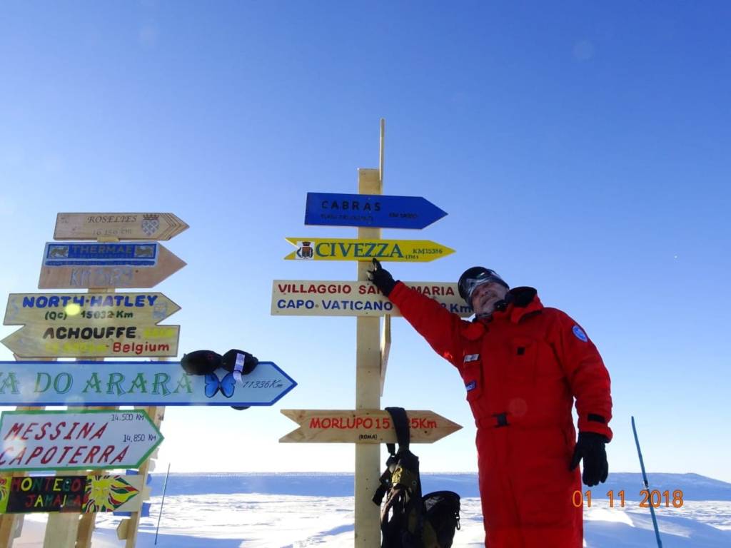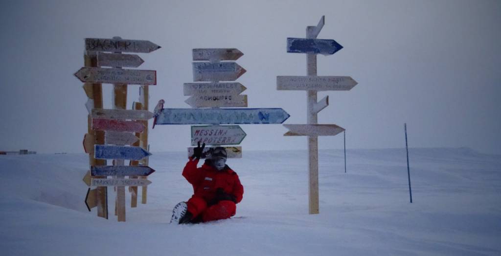 “Lì è tradizione che gli ospiti della base abbiano la possibilità di appendere un cartello che indichi la propria città. Ci sono dei pali appositi. L’unica condizione è che te lo devi costruire da solo a mano, con materiali di scarto.