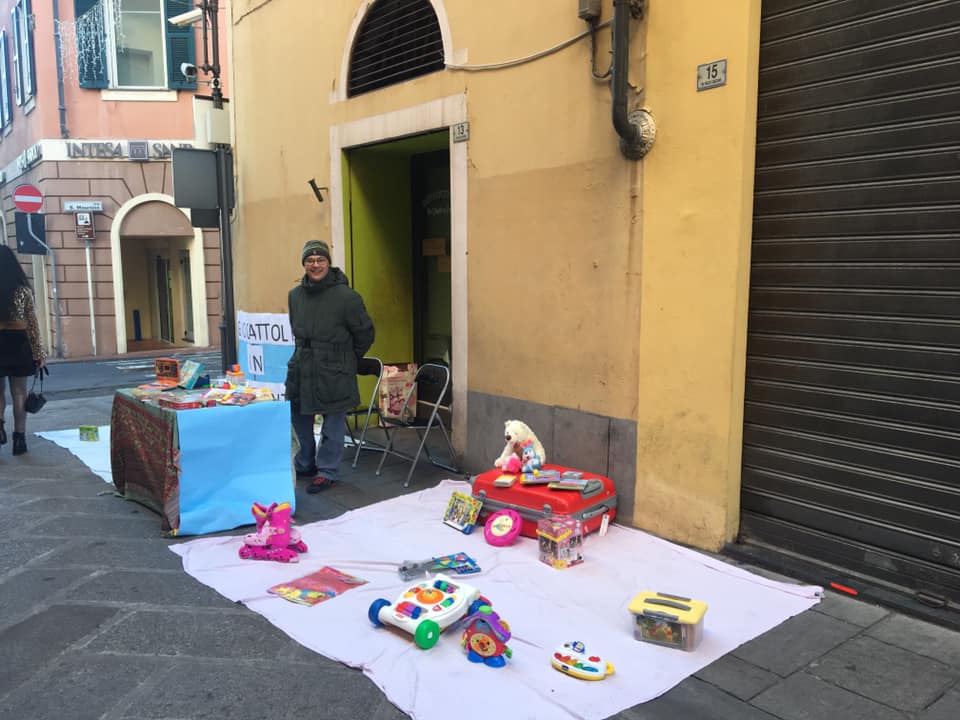“Si tratta di un’iniziativa nazionale del Movimento Cinque Stelle volta al riuso, al riciclo e alla donazione dei giocattoli. Consiste nel portare i bambini nei punti allestiti in oltre 100 città in tutta Italia. Ciascun bambino porta due giocattoli e può sceglierne uno tra quelli disponibili. C’è questa condivisione dei giocattoli e i giocattoli rimasti saranno donati all’Ospedale Gaslini o ad altre associazioni che ne faranno richiesta. Un grazie a tutti i bambini che hanno partecipato, è stata un’Epifania indimenticabile!”.