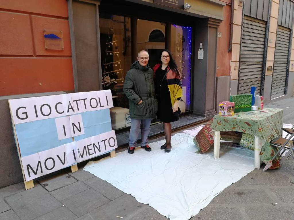 Ad accogliere i bambini Maria Nella Ponte, consigliere comunale del M5S a Imperia, e Mario Attilio Rossi, attivista del M5S a Diano Marina. Imperia era l’unica città in Liguria a ospitare l’iniziativa “Giocattoli in Movimento”.