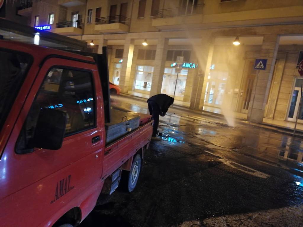 Sul posto sono intervenuti i tecnici Amat per mettere in sicurezza la zona e valutare l’entità del danno. Per effettuare la riparazione, è stata chiusa l’erogazione dell’acqua nel tratto interessato.