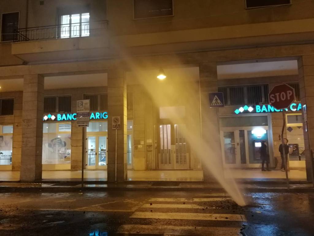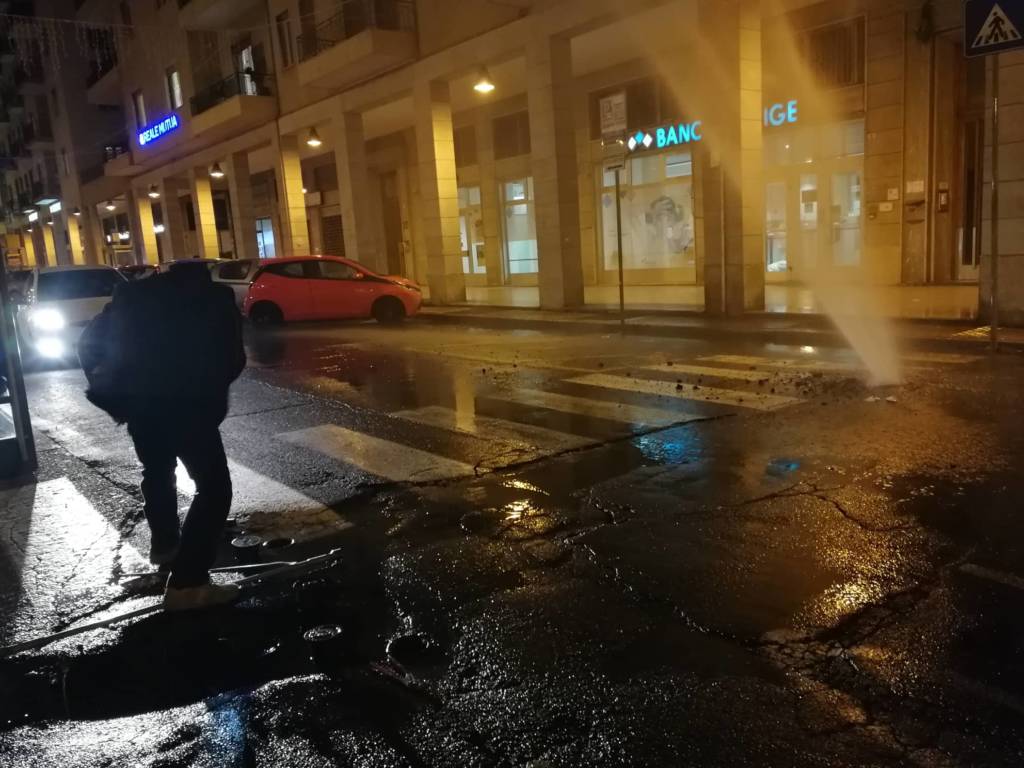 Un geyser di diversi metri è uscito dall’asfalto in via Berio nel pomeriggio di oggi, lunedì 7 gennaio, a seguito dell’esplosione di un tubo dell’acquedotto.