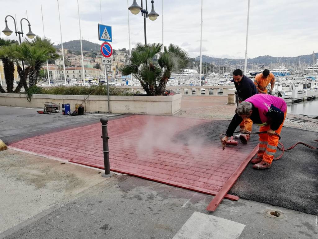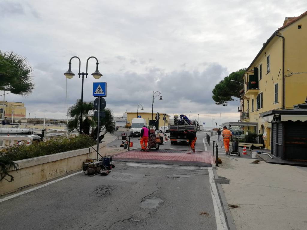 È in corso la realizzazione dell’attraversamento pedonale rialzato in via Scarincio, a Borgo Marina, l’ultimo dei cinque voluti dal Comune di Imperia in altrettante zone ritenute a rischio dal punto di vista della sicurezza stradale.