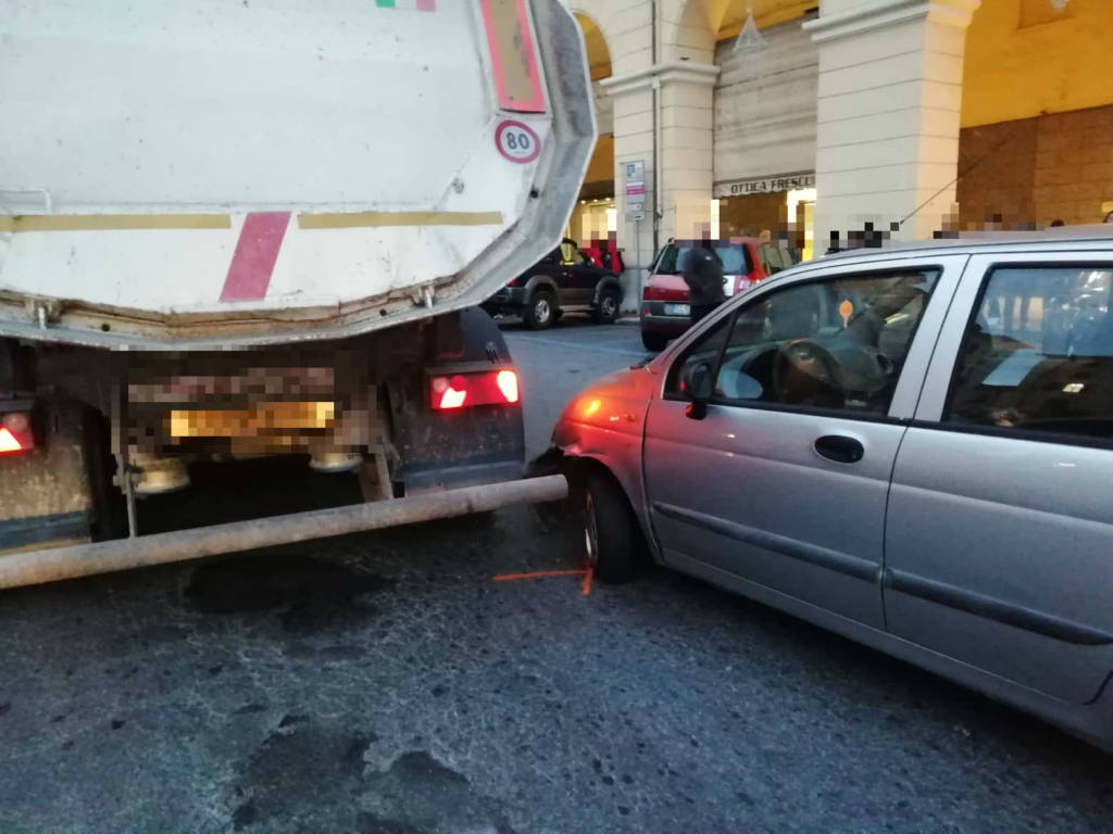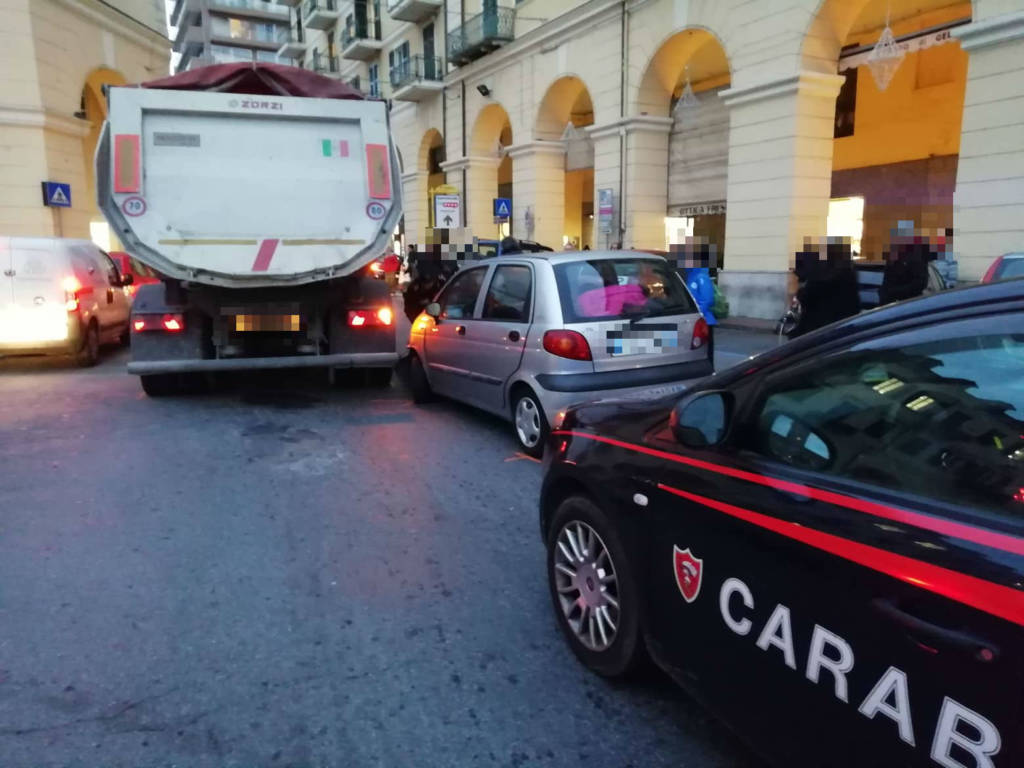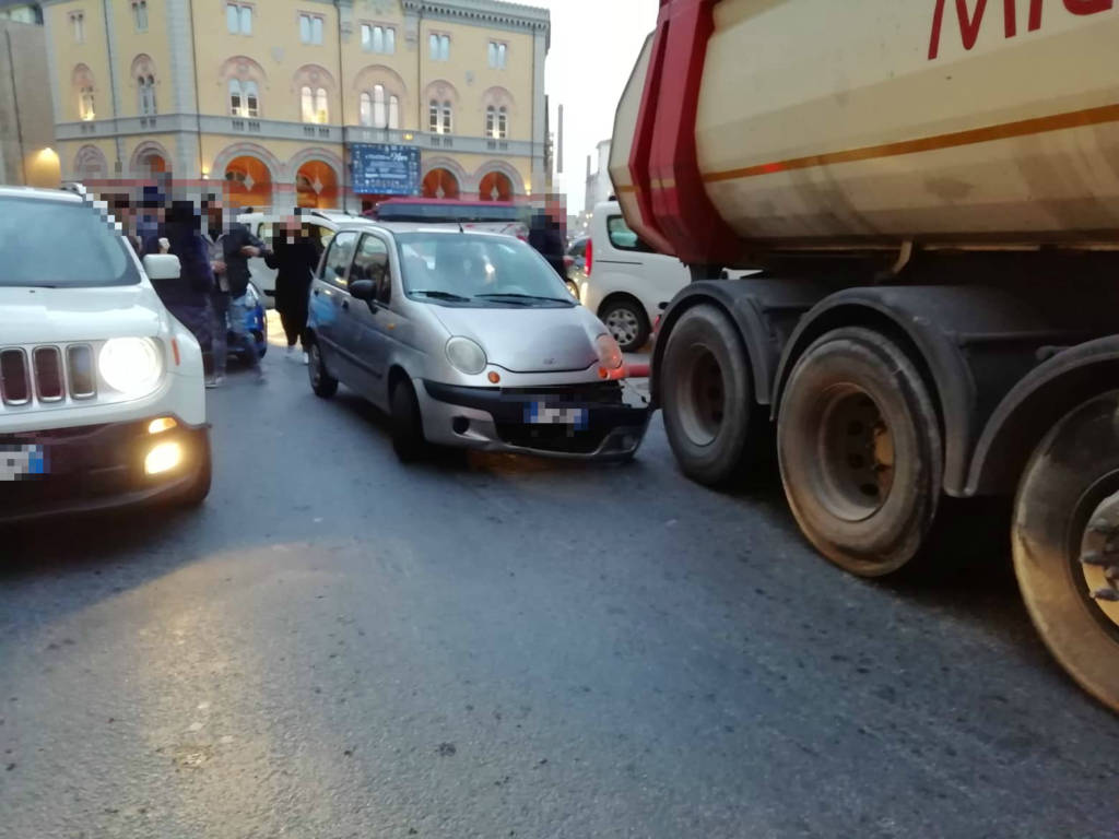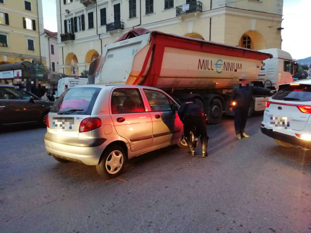 Traffico in tilt nel centro di Oneglia per un incidente stradale in piazza Dante che ha visto coinvolti un’auto e un camion.
