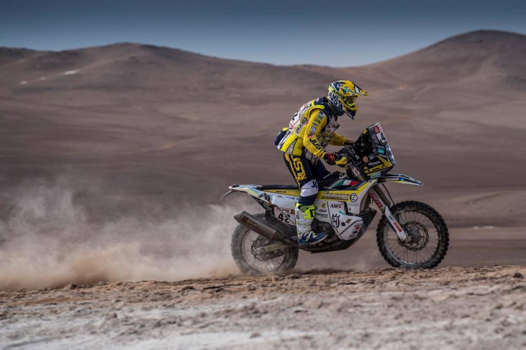 Note riflessive a parte, vi avevamo lasciato nella giornata di ieri con “Mirchetto” Pavan che doveva ancora uscire dal settore cronometrato e abbiamo successivamente rilevato il suo buon risultato, l’ennesimo per il giovane rookie che corre nella “malle-moto”, che chiude in 75a posizione davanti a Minelli 86°. La giornata di oggi ci regala ancora un successo per Maurizio Gerini#42 saldamente in sella alla sua potente Husqvarna FE 450 rally chiude ancora con una straordinaria 18a posizione che lo fa salire tra i big in 15a piazza e lo fa rimanere saldamente in testa nella Classe Marathon, riservata alle moto di derivazione di serie che ha già conquistato lo scorso anno da rookie.
