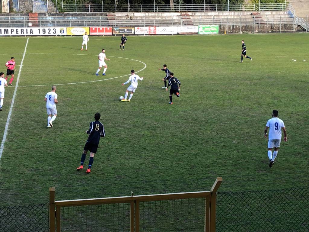 decentrato sulla fascia destra ma respinge con i pugni Carlucci, sulla respinta si avventa Castagna che prova il tiro a botta sicura al limite dell’area piccola ma la sua conclusione colpisce la traversa. Continua l’Imperia con grande determinazione e grinta, al 14′ prova ancora Castagna di testa su cross di Faedo dalla fascia destra ma il suo tiro finisce alto sopra la traversa. Al 22′ occasionissima per l’Imperia sui piedi di Giglio che in un’azione solitaria supera in velocità la retroguardia ospite, un po troppo avanzata, trovandosi a tu per tu con Carlucci che non riesce a deviare la conclusione che però finisce sul primo palo. Al 36′