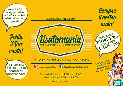 Usatomania, è un’azienda presente a Imperia dal 1999: ha iniziato da un negozietto senza pretese di 180m2, per poi trasferirsi nel 2001 sulla Via Nazionale, con un locale di 650m2.