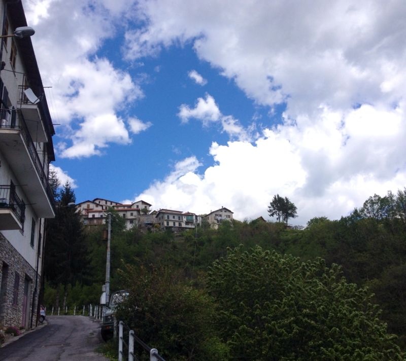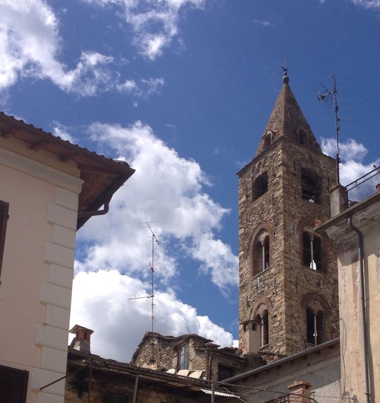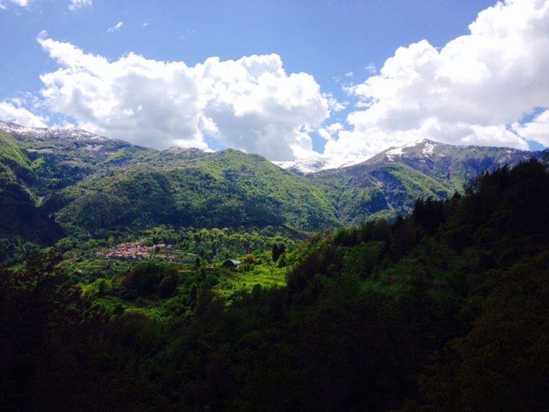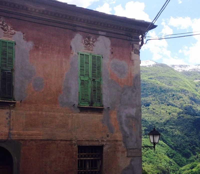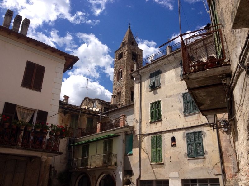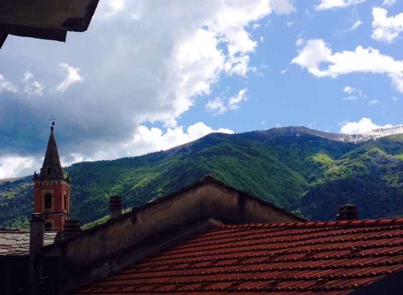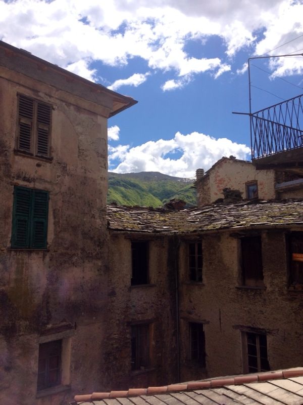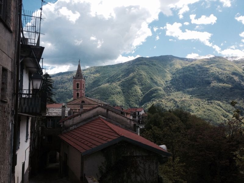 Passeggiando nel paese, colpiscono gli antichi tetti di ardesia e le montagne ancora lievemente innevate sopra il vicino borgo di Montegrosso Pian Latte.