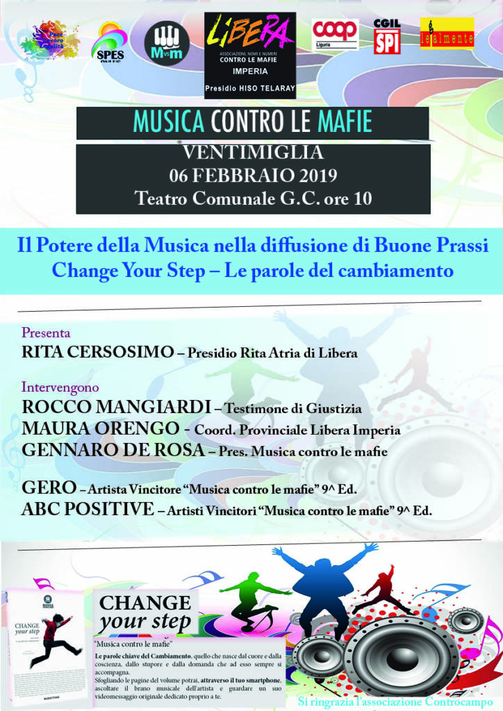 Ieri mattina presso il Teatro Comunale di Ventimiglia g.c. si è svolto l’incontro “Musica contro le mafie” con le delegazioni degli studenti delle scuole del comprensorio di Ventimiglia e quelle della Val Nervia che aderiscono al progetto Legalmente.