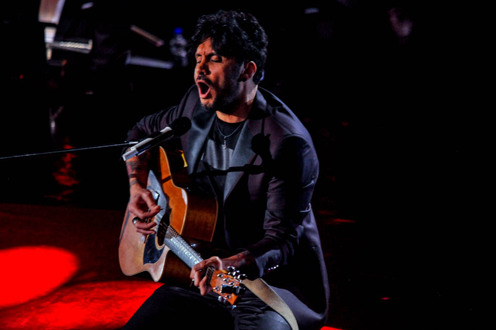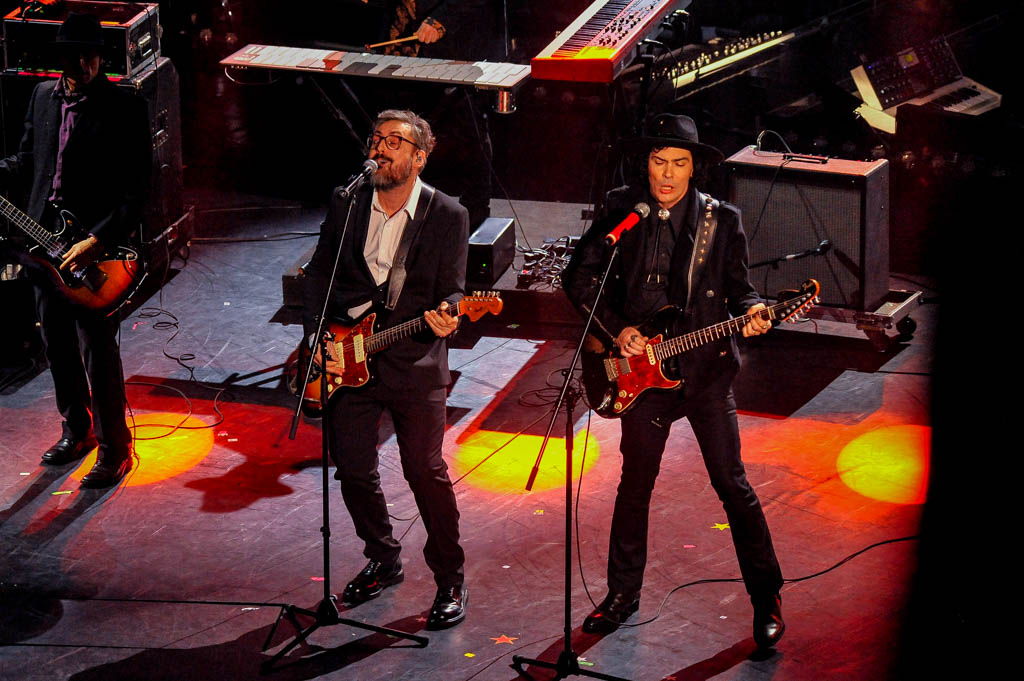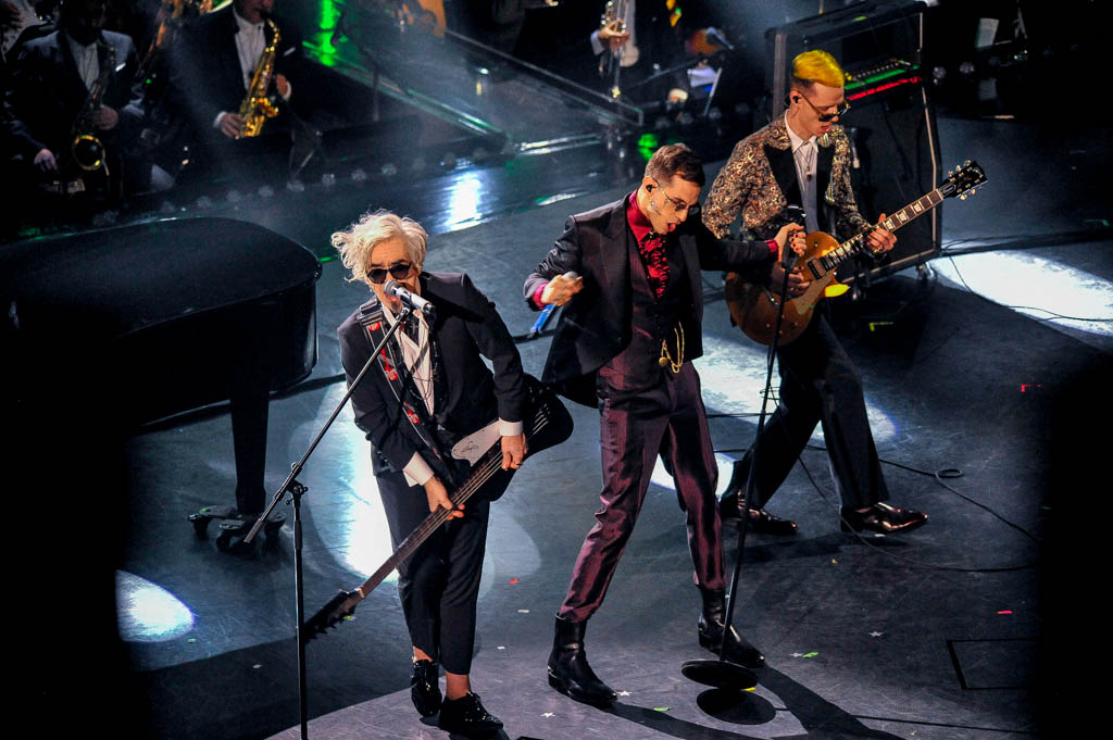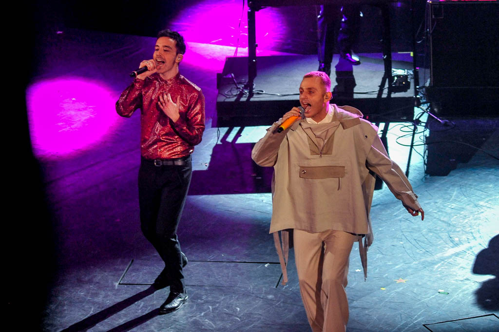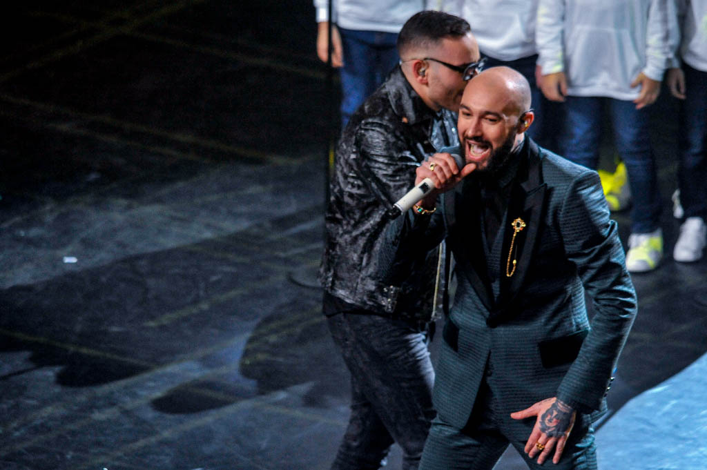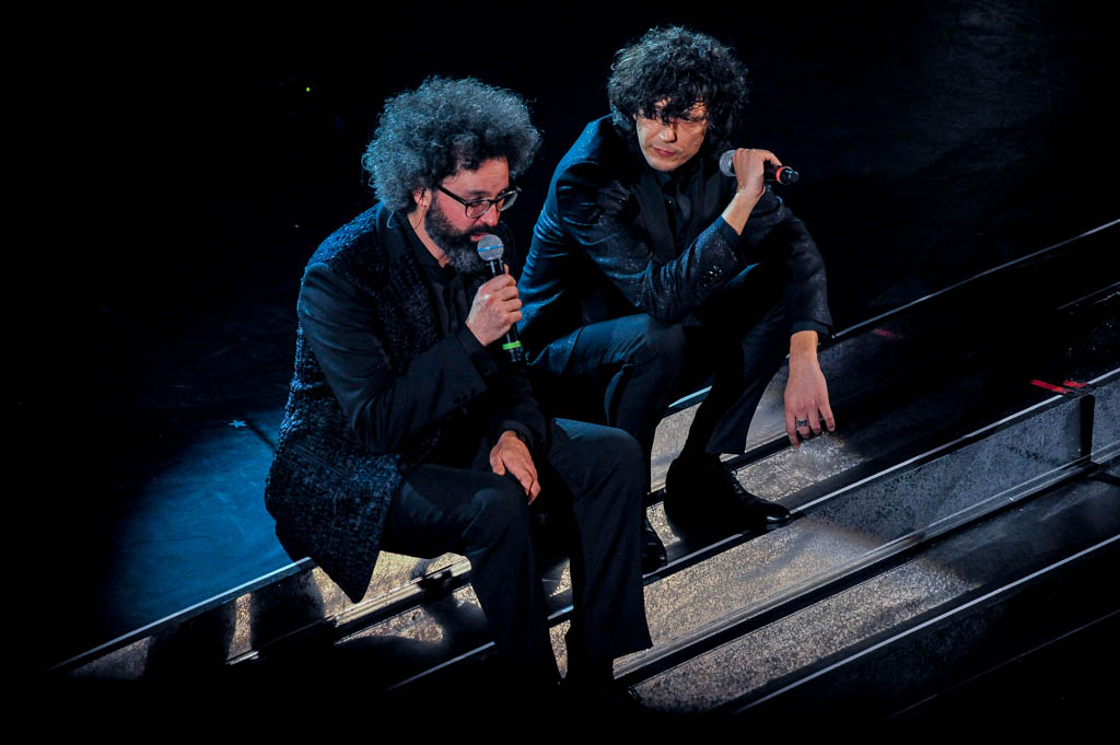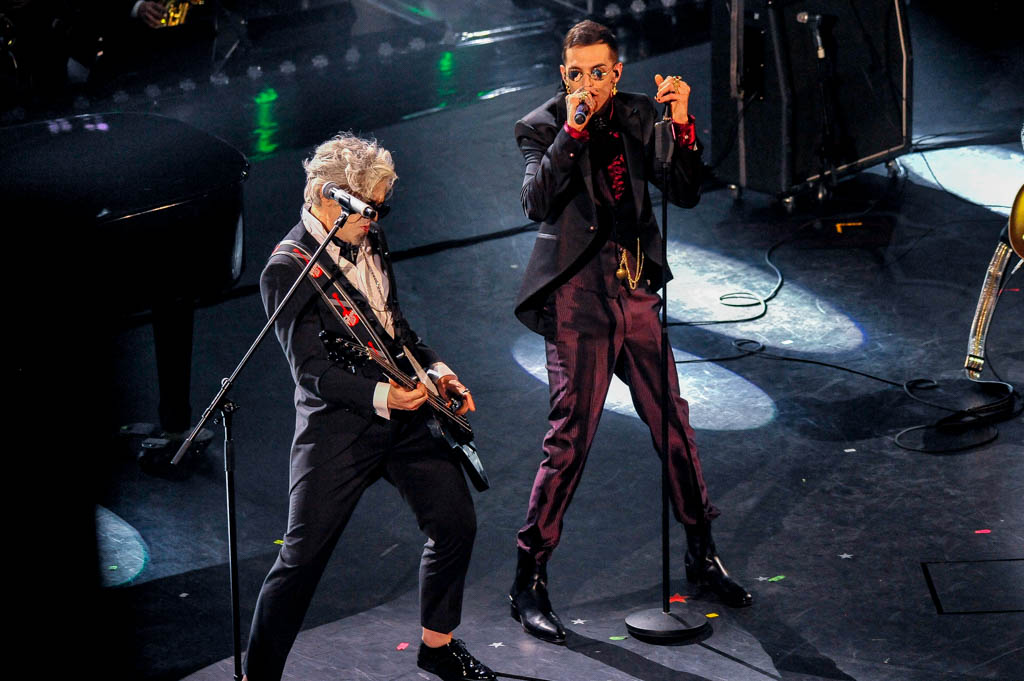 Già solo all’entrata sul palco si sente la carica esplosiva che sta per arrivare. E infatti, il duo non delude e si merita l’ovazione del pubblico dell’Ariston e della della sala stampa.