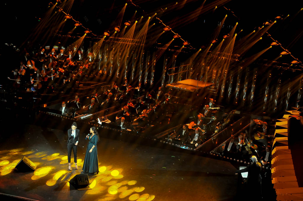 Come per le altre serate, apre la kermesse il direttore artistico Claudio Baglioni, sulle note di “Acqua dalla Luna”, circondato da ballerini circensi. Dopodiché si comincia con i duetti.