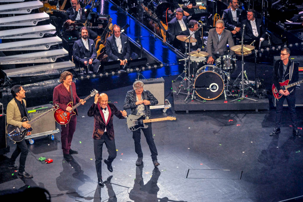 L’annunciato omaggio a Guccini, si concretizza nel duetto Baglioni-Ligabue sulle note di “Dio è morto”, definita una canzone “quasi profetica” dal direttore artistico.
