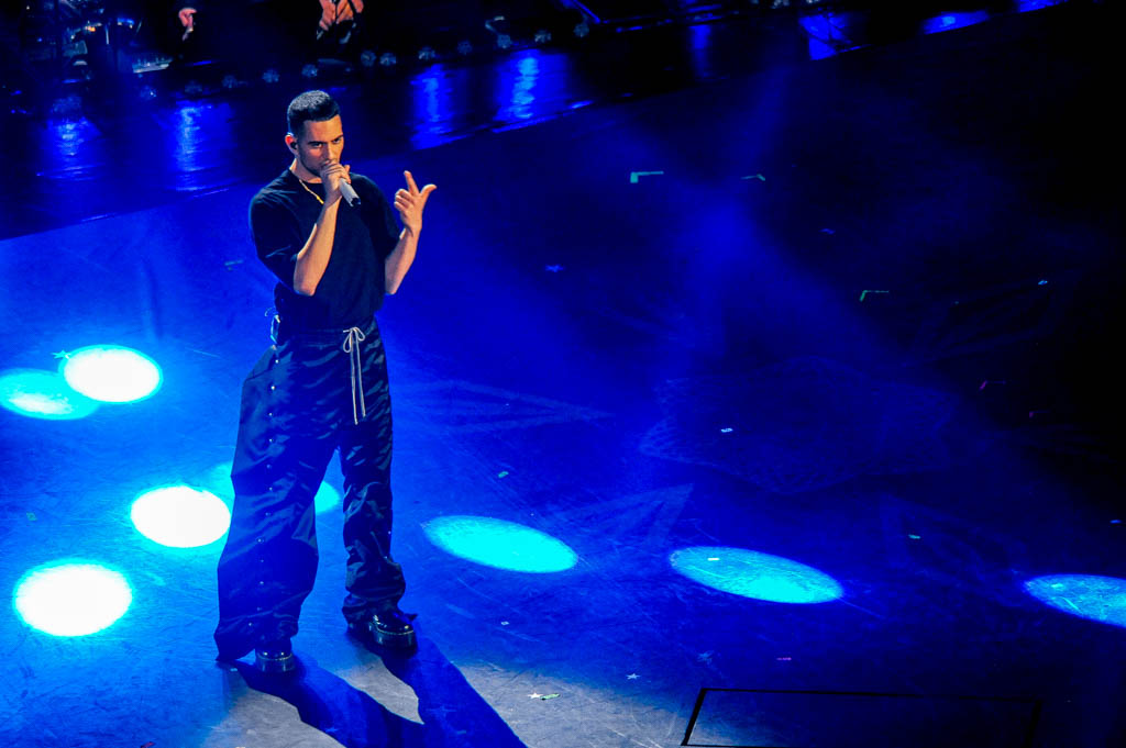 Un palco dell’Ariston mai visto prima accende il pubblico. Il segno dei tempi che, finalmente, cambiano e si aggiornano. Mahmood è perfetto per la sua canzone, Guè Pequeno di meno.
