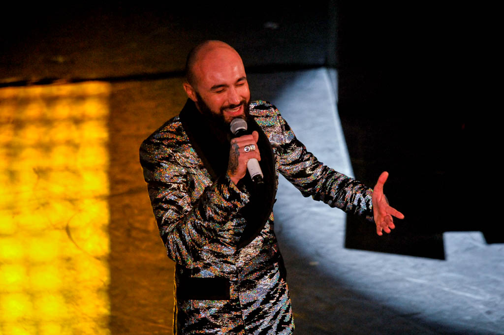 Tocca a lui, insieme al rapper Rancore, aprire la serata, con i lati positivi e negativi del caso.