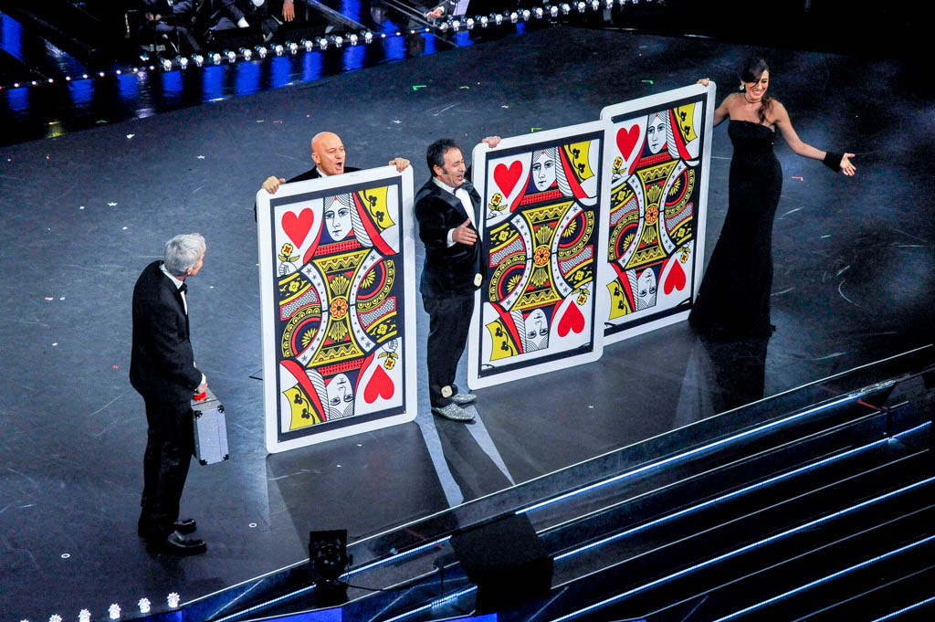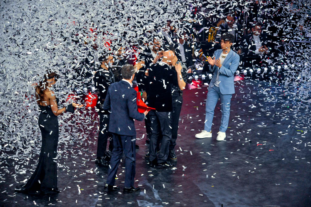 “È stato un viaggio appassionante – così apre la kermesse il direttore artistico, dopo l’esibizione con il corpo di ballo sulle note di “Adesso la Pubblicità” – Non so chi vincerà questa serata, ma sicuramente ha vinto la musica e la speranza di tutti i giovani artisti”.