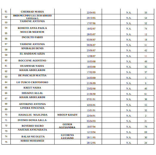 Ecco la graduatoria