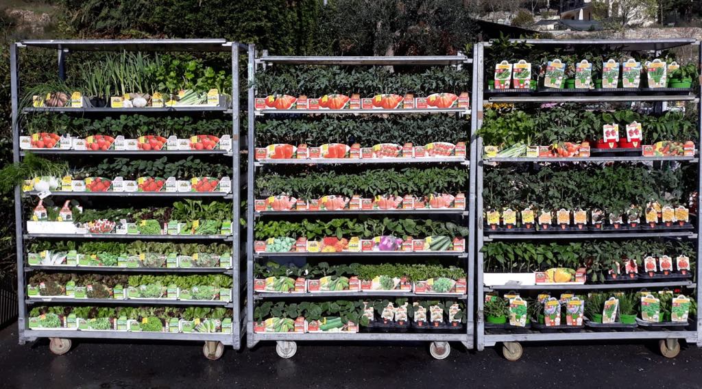 È disponibile un’ampia gamma fra piantine da orto, erbe aromatiche e piante perenni: