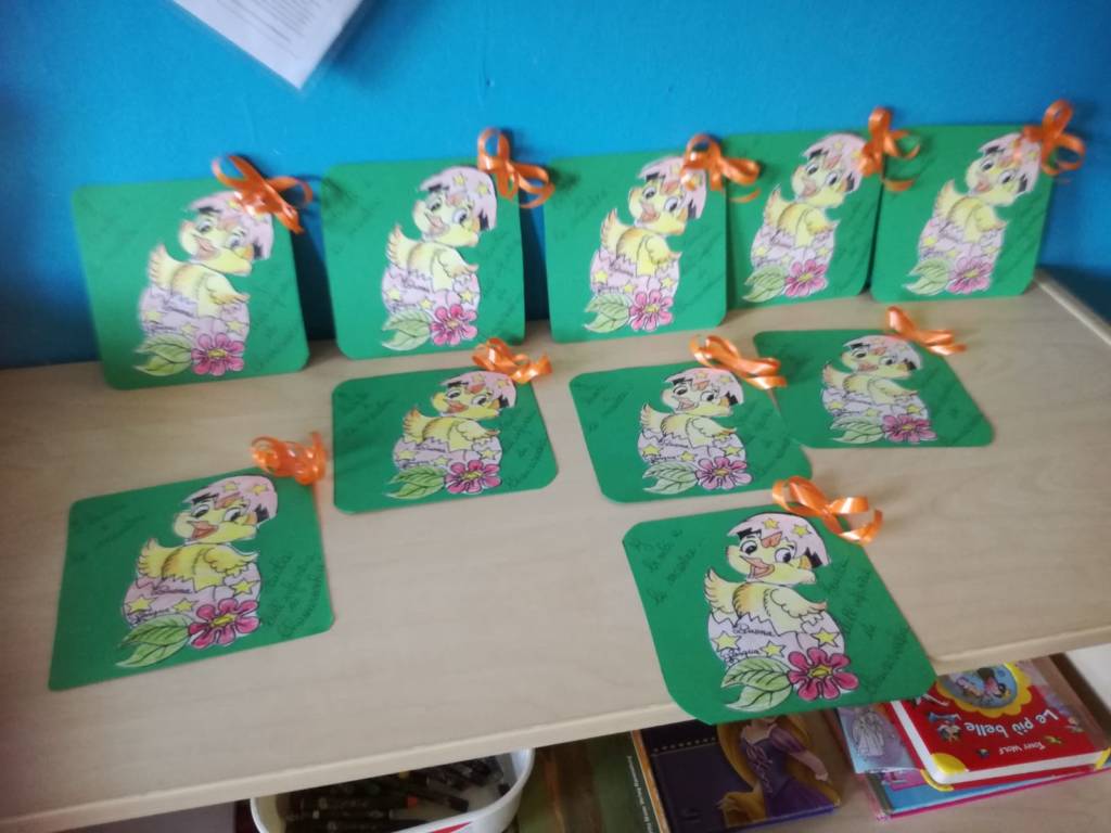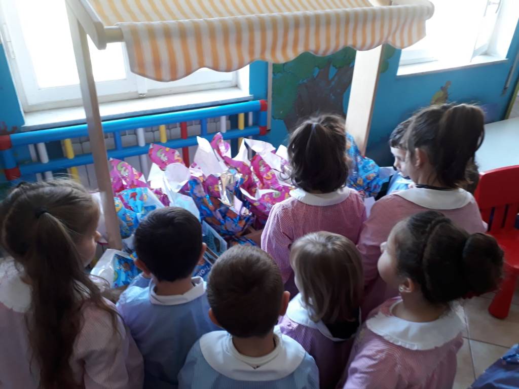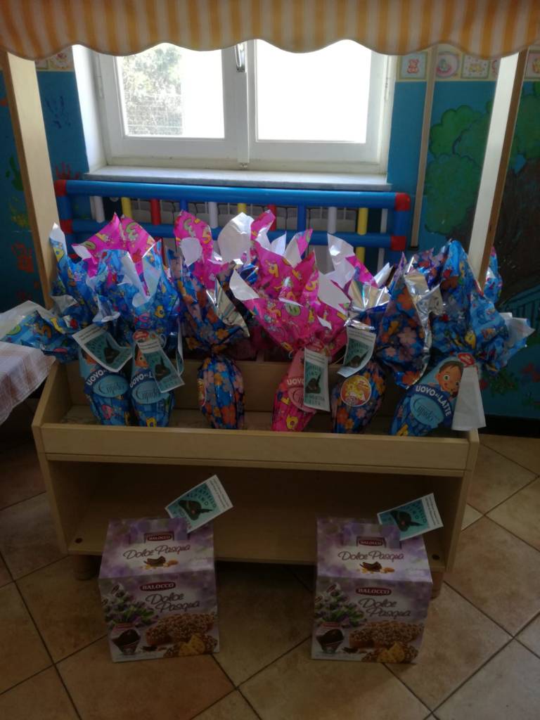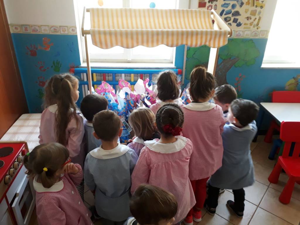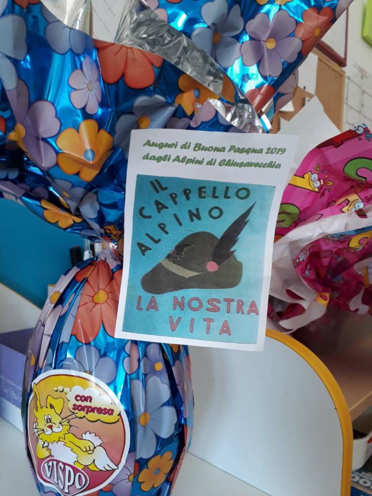 La piccola festa e lo scambio degli auguri è proseguito con il saluto degli Alpini, un banchetto gentilmente offerto, la consegna delle uova di cioccolato ad ogni bambino, una colomba alle maestre.