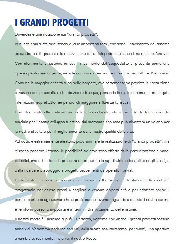 Non capendo dove vuole arrivare questa amministrazione con le scelte che ha fatto in questi anni che si sono tradotte in qualche opera strutturale e in qualche manutenzione elettorale, ci siamo riuniti per decidere cosa vorremmo per il nostro paese.