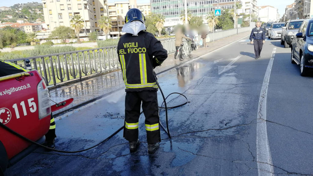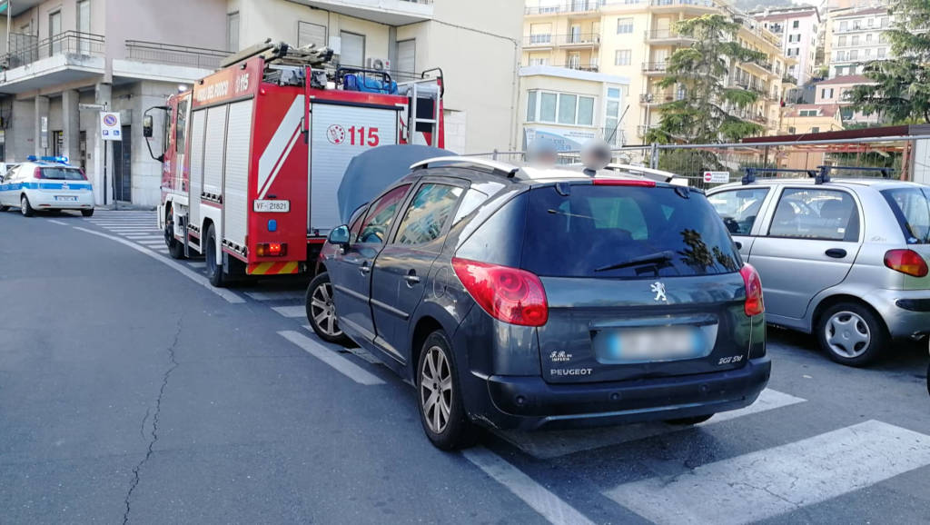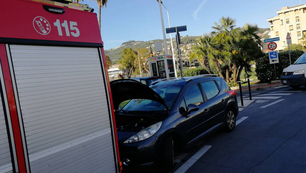 Principio di incendio, nel tardo pomeriggio di oggi, sabato 27 aprile, al vano motore di un’auto all’altezza del ponte Impero, a Imperia. Sul posto sono intervenuti i Vigili del Fuoco e la Polizia Municipale.