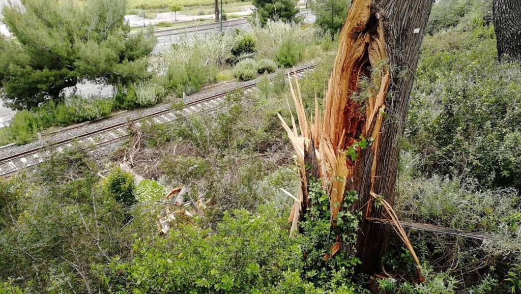 Oltre al brusco calo della temperatura, Imperia ha dovuto fare i conti con il forte vento, oltre 100 km/h, che da stanotte sta causando non pochi disagi. Oltre alle decine di mastelli che svolazzano per la città, questa mattina si sono registrati numerosi interventi dei vigili del fuoco prima a Vasia per un palo della luce crollato, poi per la messa in sicurezza di due pali del telefono in strada Ciosa e per finire sull’Aurelia, all’altezza di villa Faravelli dove un tronco di un albero si è spezzato ed è caduto sull’ex semine ferroviario.