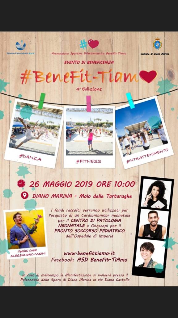 Il 26 maggio 2018 sul Molo delle Tartarughe a Diano Marina (IM) dalle 10.00 alle 19.00 si terrà la 4° edizione di #BeneFit-TiAmo, una Manifestazione a scopo benefico organizzata dall’Associazione Sportiva Dilettantistica Benefit-Tiamo.
