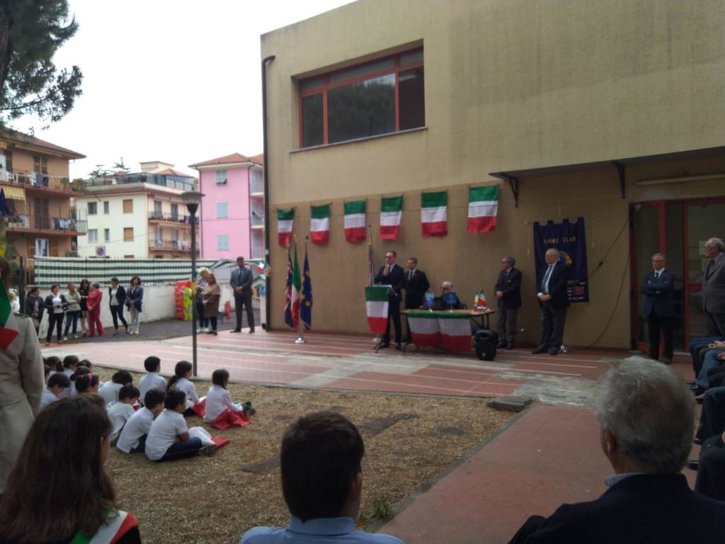 É con questo spirito che giovedì 23 maggio nell’ambito del tradizionale evento promosso dal Lions Club Imperia Host e dal Lions Club Imperia la Torre in collaborazione con le insegnanti del plesso scolastico delle scuole primarie di via degli Ulivi sono state consegnate oltre 150 bandiere Italiane ad altrettanti allievi delle classi terza, quarta e quinta.