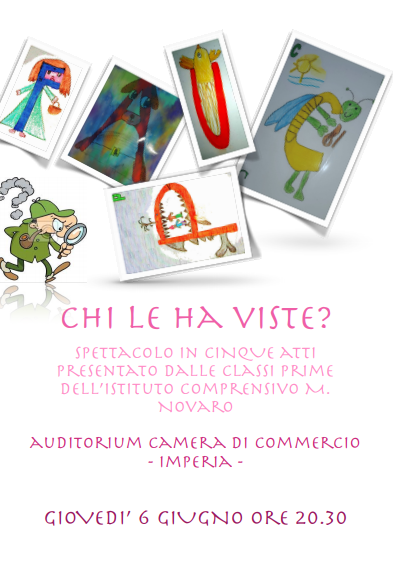 - Giovedì 6 giugno ore 20,30 tutte le classi prime “ Chi le ha viste?” ( una avventura alla ricerca delle lettere perdute nel mondo delle fiabe)
