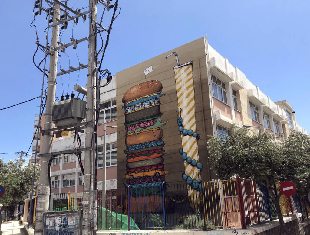 Durante lo Athens Street Art Festival, progetto volto a incrementare e a supportare la creatività nel campo dell’arte urbana, l’artista imperiese MrFijodor ha dipinto la facciata di una scuola di Nikaia.