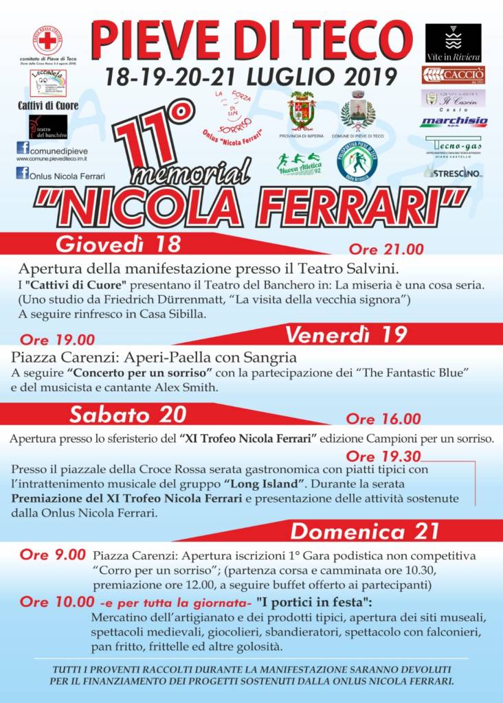 Torna a Pieve di Teco, dal 18 al 21 Luglio, il Memorial “Nicola Ferrari” quest’anno giunto alla sua XIesima edizione.