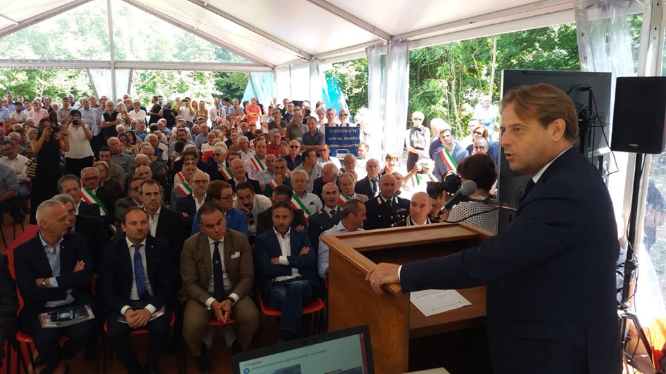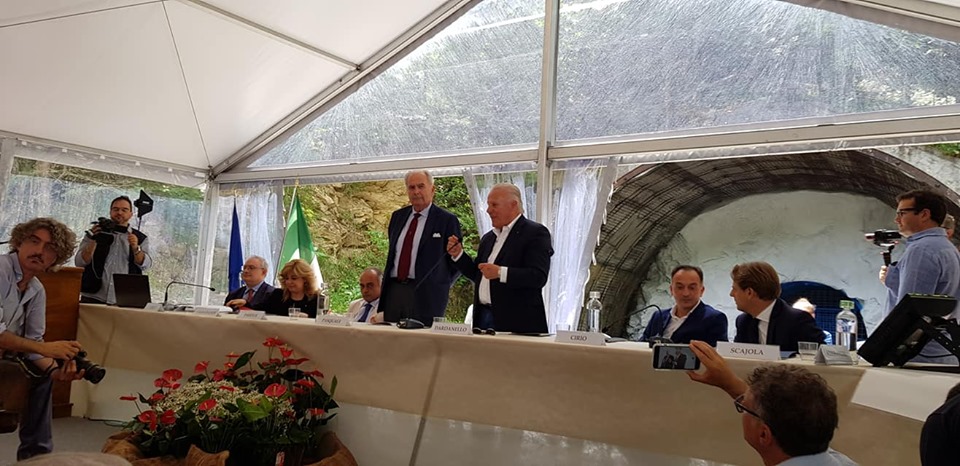 Si è tenuta questa mattina la presentazione del progetto definitivo del Traforo Armo-Cantarana. All’evento, tenutosi nell’area prospiciente il traforo geognostico (foro pilota) in località Cantarana, comune di Ormea (CN), hanno preso parte i vertici del Ministero delle Infrastrutture e dei Trasporti, il presidente della Regione Piemonte Alberto Cirio, i vertici dell’A.N.A.S. e Autostrada dei Fiori, i presidenti delle Province di Imperia e di Cuneo, gli amministratori locali, oltre ai rappresentanti di imprese e associazioni dei territori coinvolti.