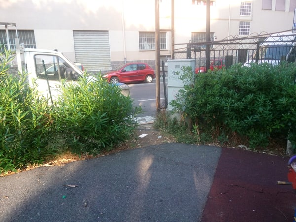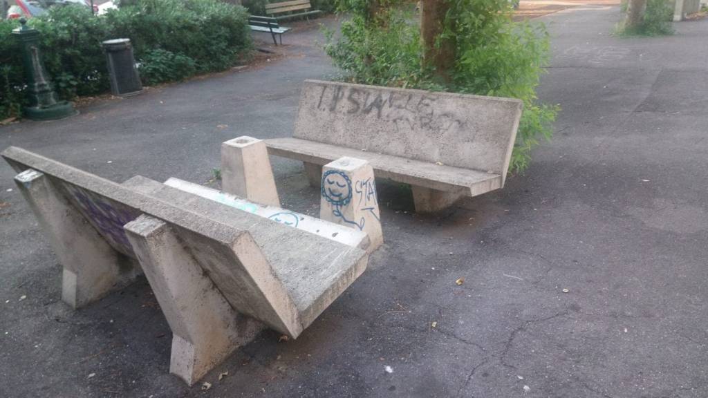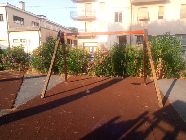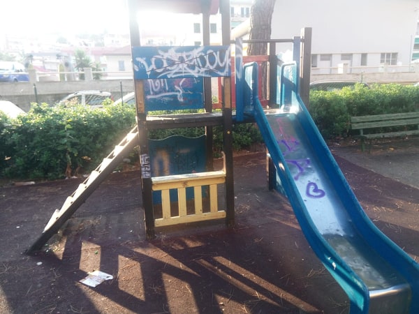 La sorpresa è stata più che amara: tavolo di marmo divelto, erbacce, lattine, bottiglie, cocci di vetro (e le bimbe avevano dei sandalini), giochi tutti graffitati e rotti… Insomma degrado puro. Da luogo di ritrovo di bambini e anziani è diventato un luogo di ritrovo di ineducati ed irrispettosi.