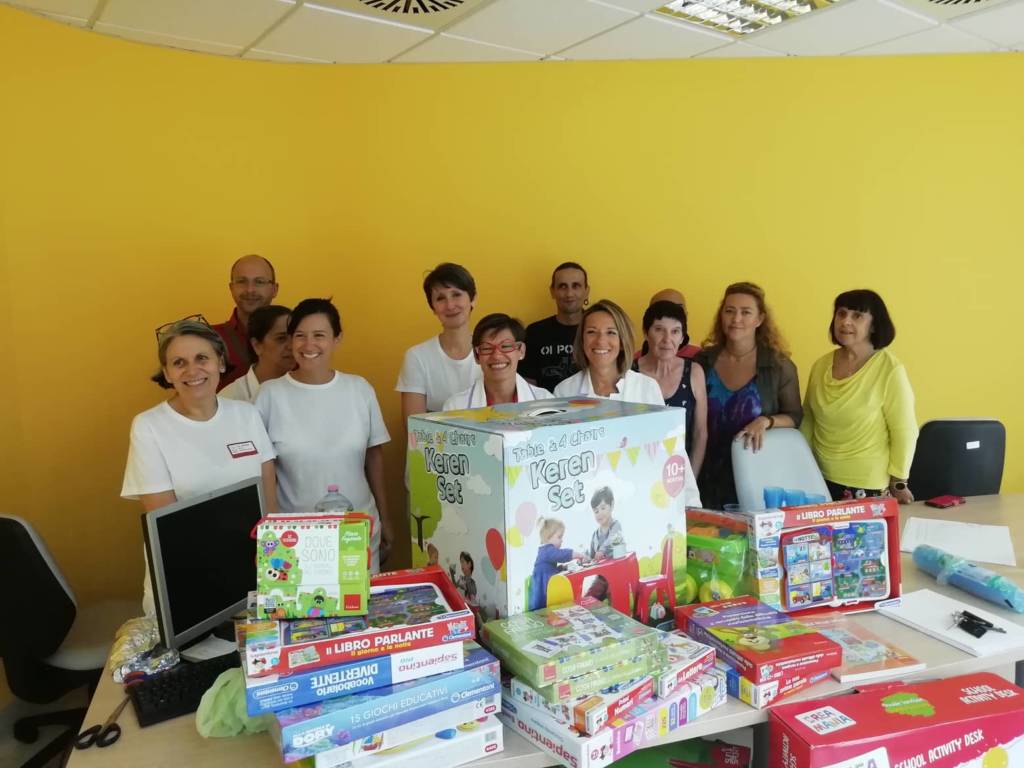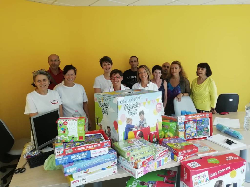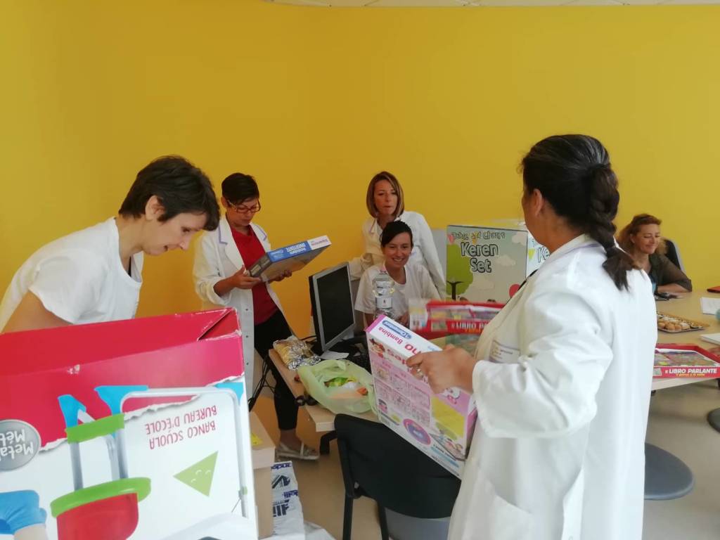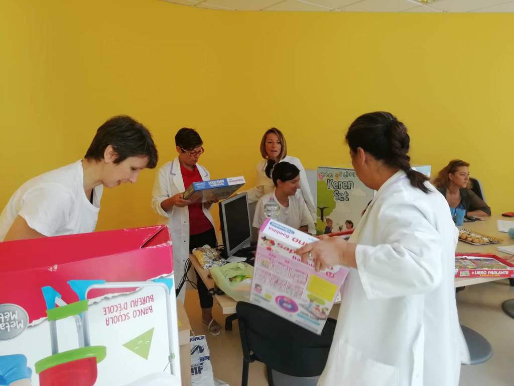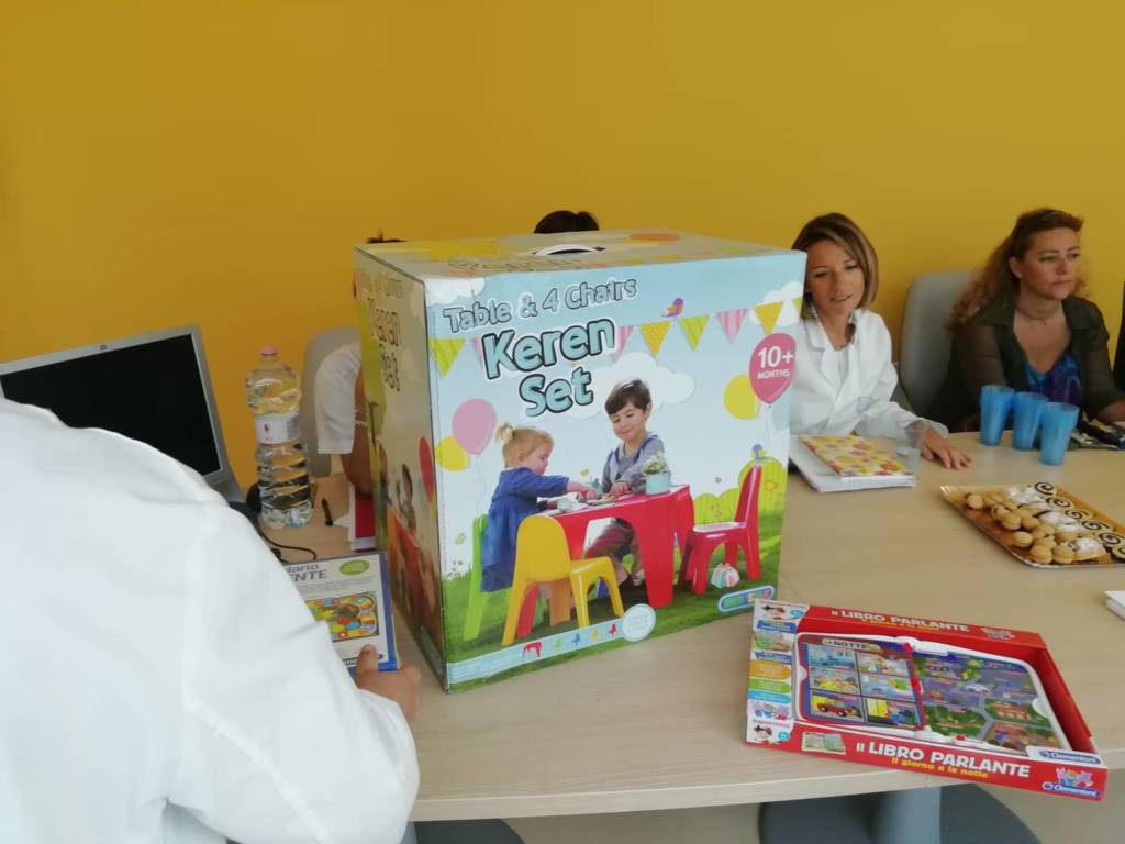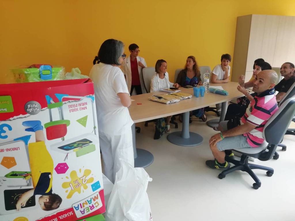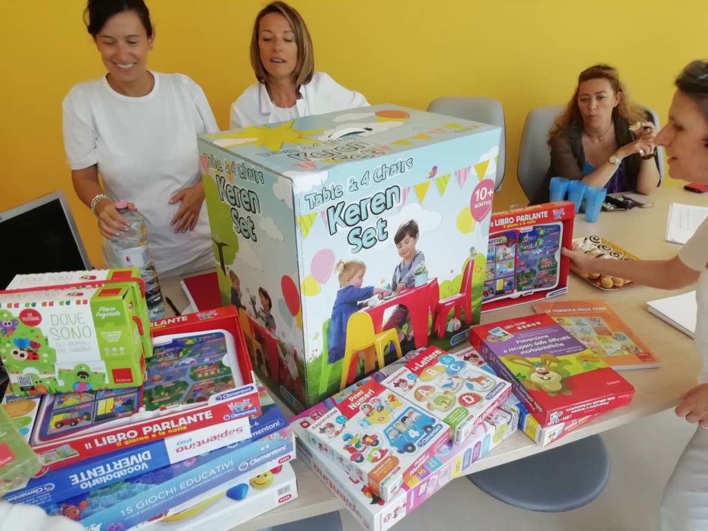 “Abbiamo ricevuto oggi degli splendidi regali da parte dell’associazione Babilonia e dall’associazione Desiglioli, che sono stati disponibile ad aiutarci a dare e preparare del materiale specifico per l’attività della logopedia del nostro centro pediatrico di riabilitazione motoria.