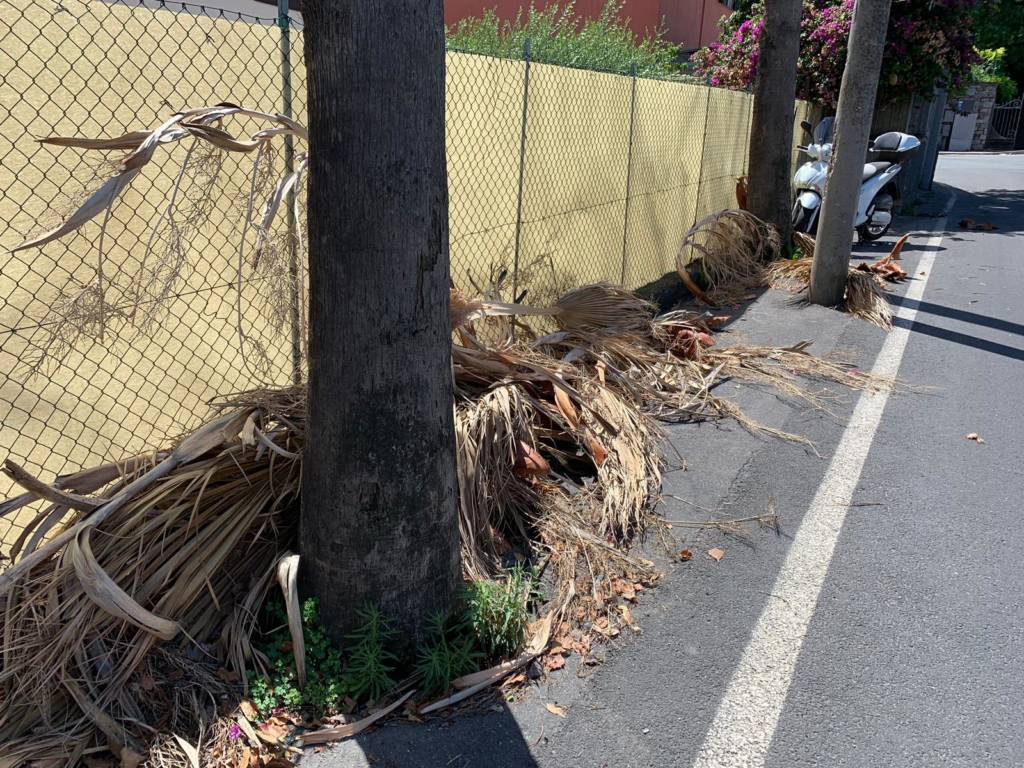 Foglie di palma in strada: i residenti lanciano l’allarme