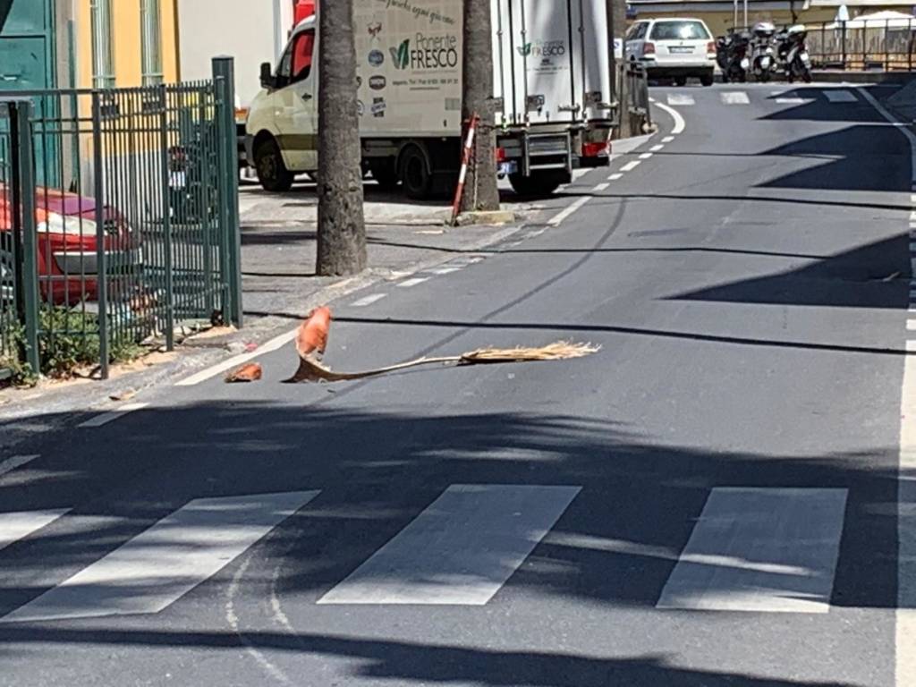 “Alto rischio da anni per pedoni, scooter e tutti gli utenti della strada”. Lo affermano i residenti di via Filippo Airenti, a Porto Maurizio, riferendosi alle foglie di palma che, in numerose occasioni, cadono sul manto stradale.