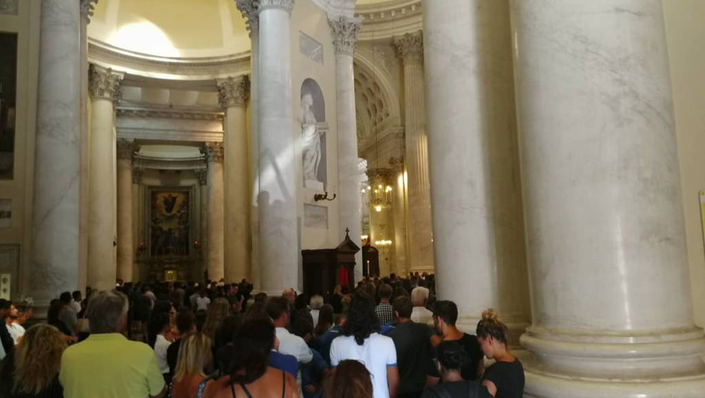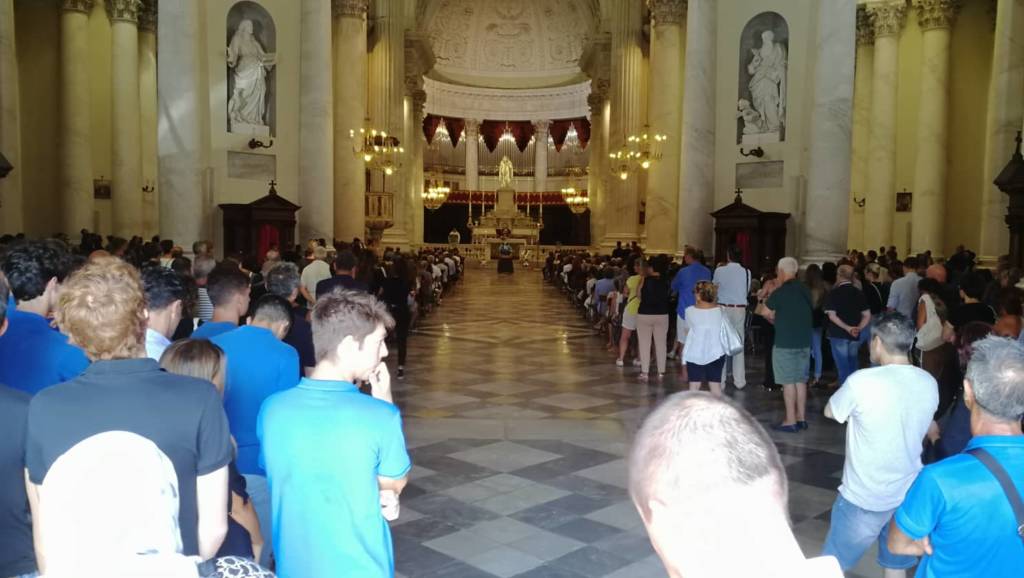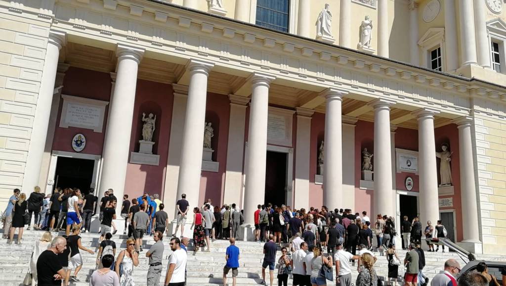 Duomo di Porto Maurizio gremito oggi, sabato 3 agosto, per l’ultimo saluto a Rafael Baroni, il 19enne morto lo scorso lunedì dopo essere precipitato sugli scogli ad Andora.