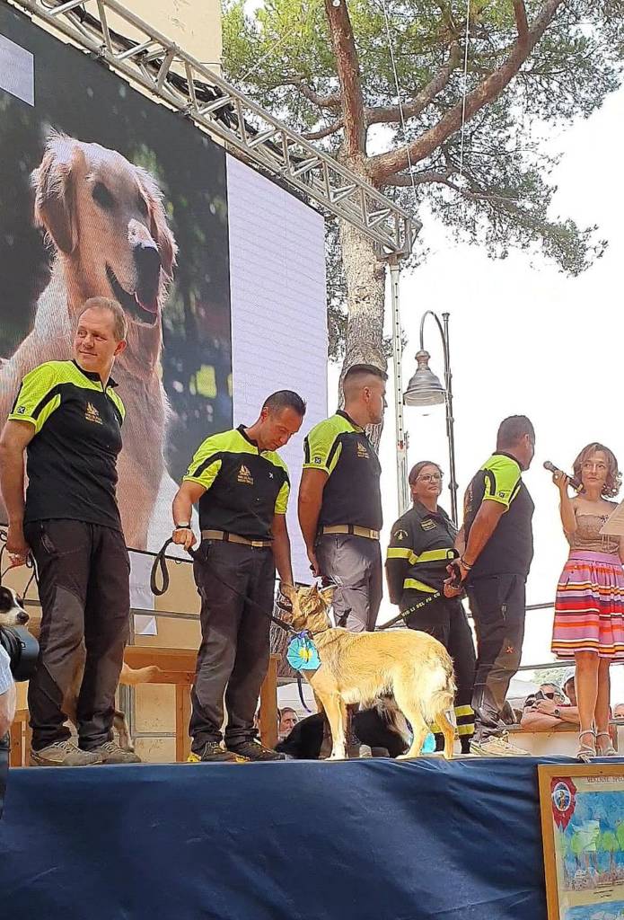 È stato consegnato il premio a tutti i cani che hanno partecipato ai soccorsi, tra cui Zoe. È stato premiato anche il nostro mezzo veterinario mobile, che ha ricevuto il premio Bonta. Anche l’imperiese Roberta Ramoino, del Cuore di Martina, ha ricevuto un riconoscimento per il contribuito fornito per la causa.