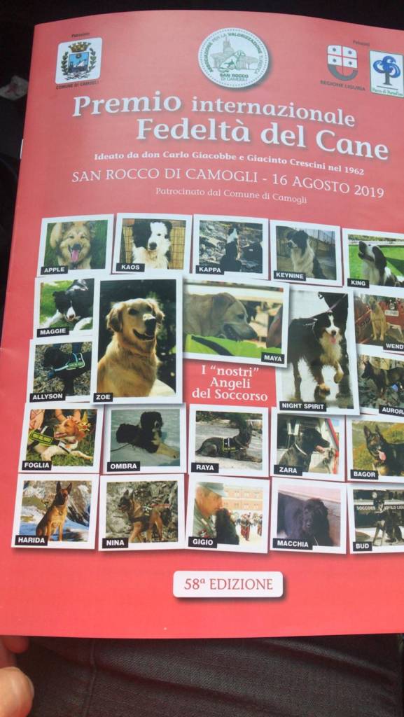 Si tratta del premio “Fedeltà” di Camogli per premiare gli “Angeli del soccorso“, ovvero le unità cinofile dei Vigil del Fuoco.