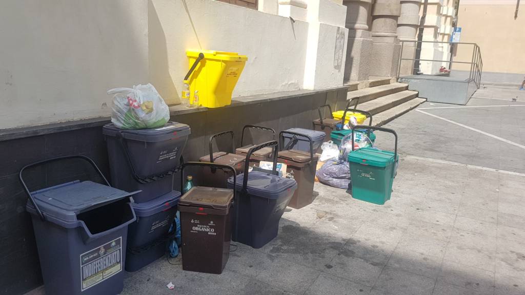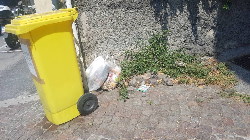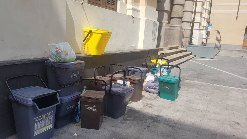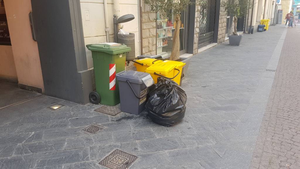 Un inviato di ImperiaPost, quindi, compiendo una semplice passeggiata del centro pedonale, ha immortalato con foto e video la situazione, documentando la presenza importante, a mattina inoltrata, di mastelli ancora da svuotare, altri vuoti, ma ancora da ritirare in casa, e di rifiuti abbandonati.