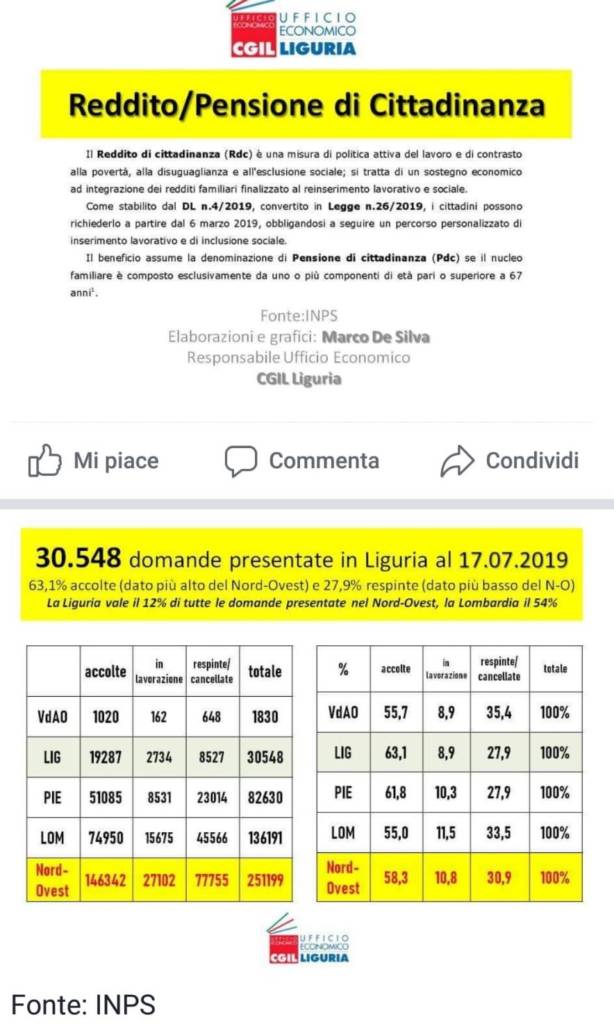 Reddito di cittadinanza: i dati in Liguria