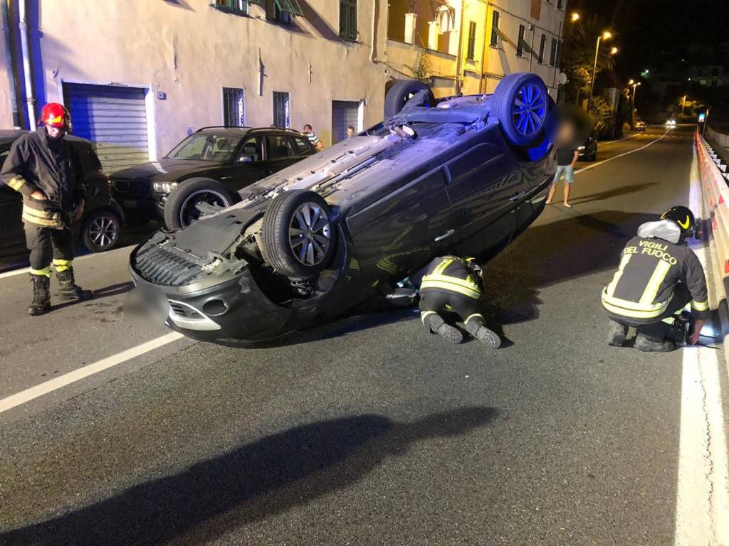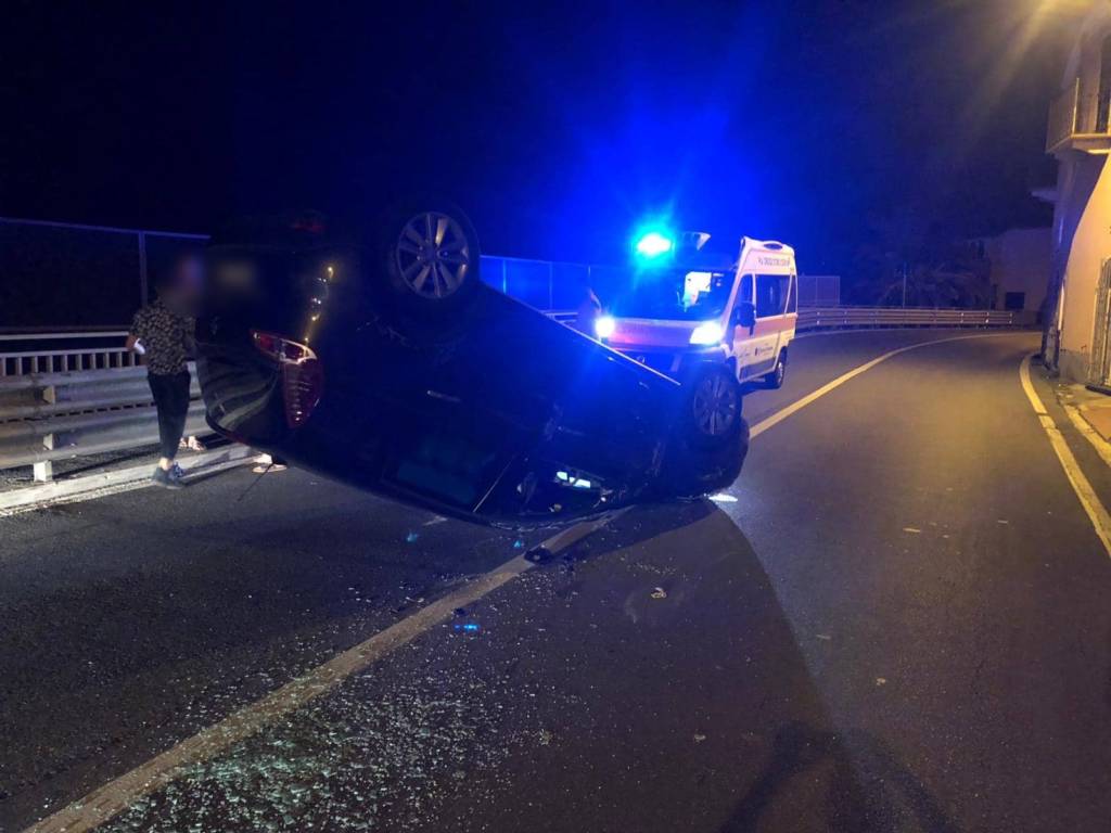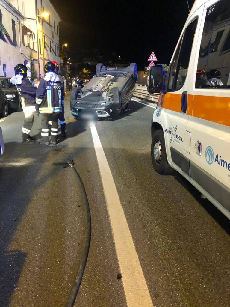 Incidente stradale nella notte a Cervo. Due giovani tedeschi si sono cappottati con l’auto sull’Aurelia.