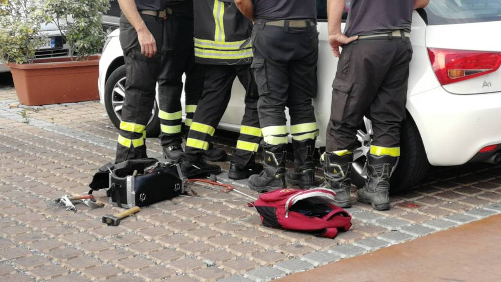 Al loro arrivo i pompieri hanno dapprima tentato di aprire l’auto con l’ausilio di cuscini pneumatici. Fallito il primo tentativo, hanno spaccato il finestrino posteriore dell’auto, un’Audi A4, per aprire poi la vettura dall’interno.