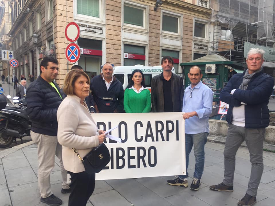“Siamo qua per chiedere che venga attuato quanto previsto dalla legge”. Così afferma Maria Gabriella Tassara, madre di Carlo Carpi, l’imprenditore genovese candidato sindaco alle scorse elezioni a Imperia e Sanremo, nel corso di un presidio organizzato in piazza De Ferrari a Genova per chiedere per suo figlio.