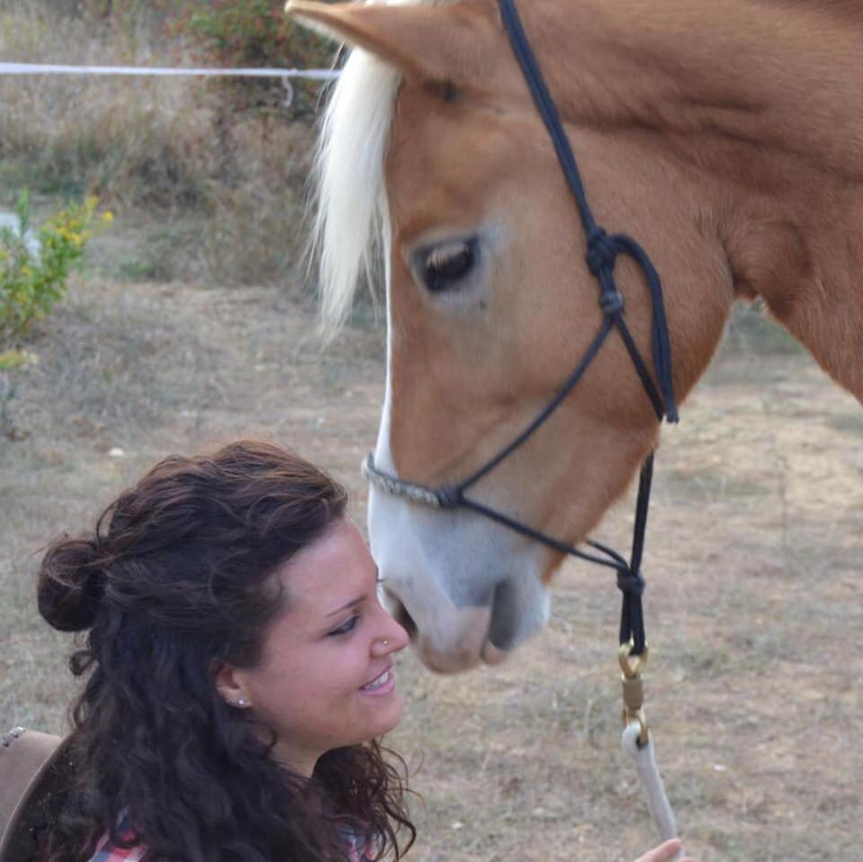 “Sono due: uno la mia prima cavallina, che ora non c’è più. L’ho avuta per 5 anni, era anzianotta, con vari problemi alle spalle, spaventata da tante cose, ex galoppatrice, aveva fatto tante gare. Ricordo che sdraiandosi si faceva sempre male ad uno degli anteriori e per curarla dovevo infilarle il piede in un secchio con acqua e sale. Era una cavallina che si spaventava sempre di tutto, ma si fidava ciecamente di me che ero una ragazzina.