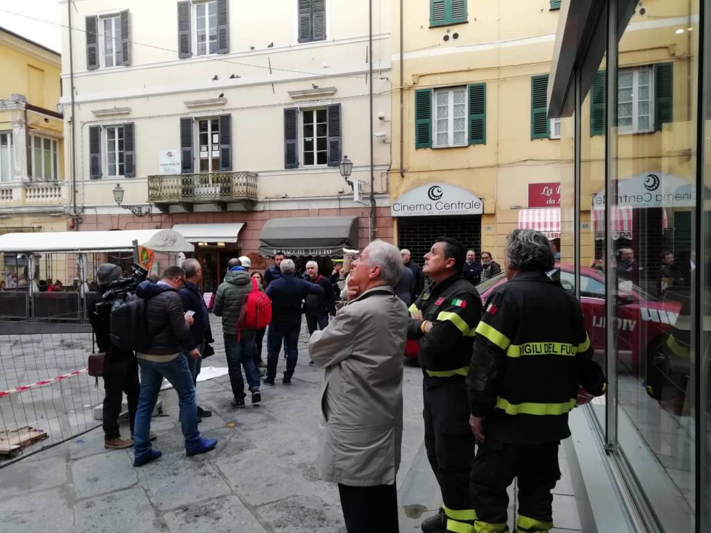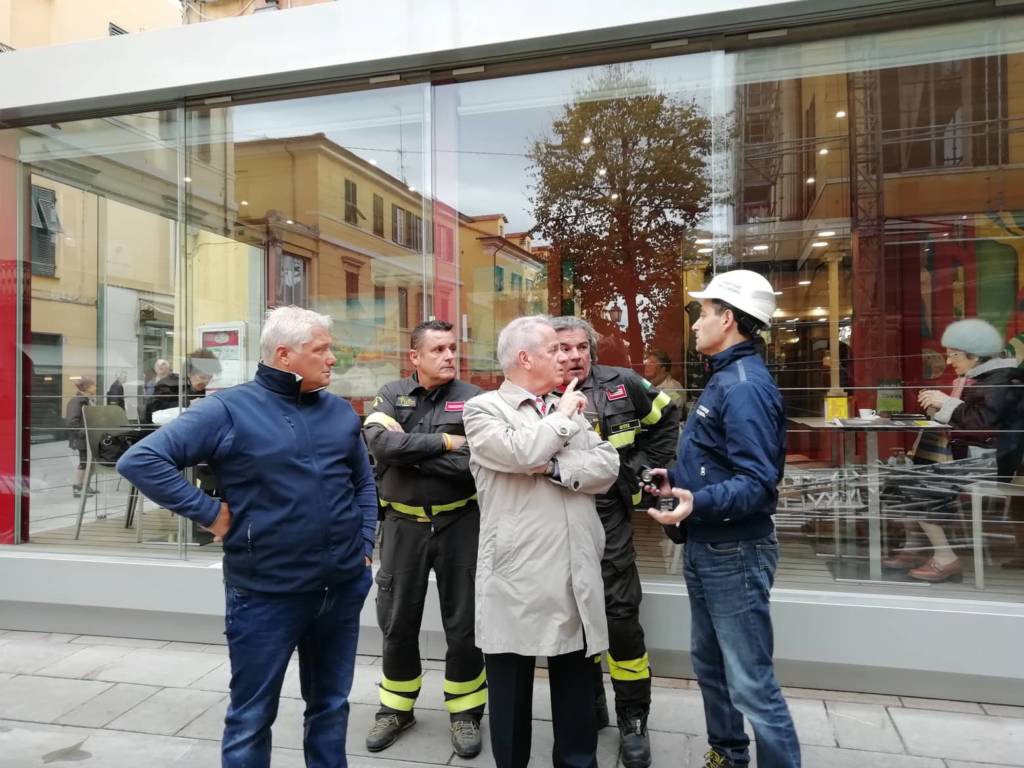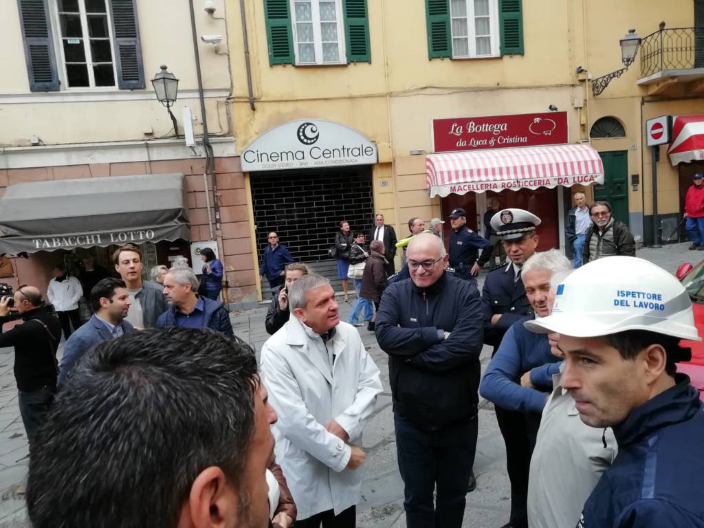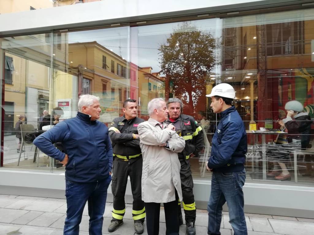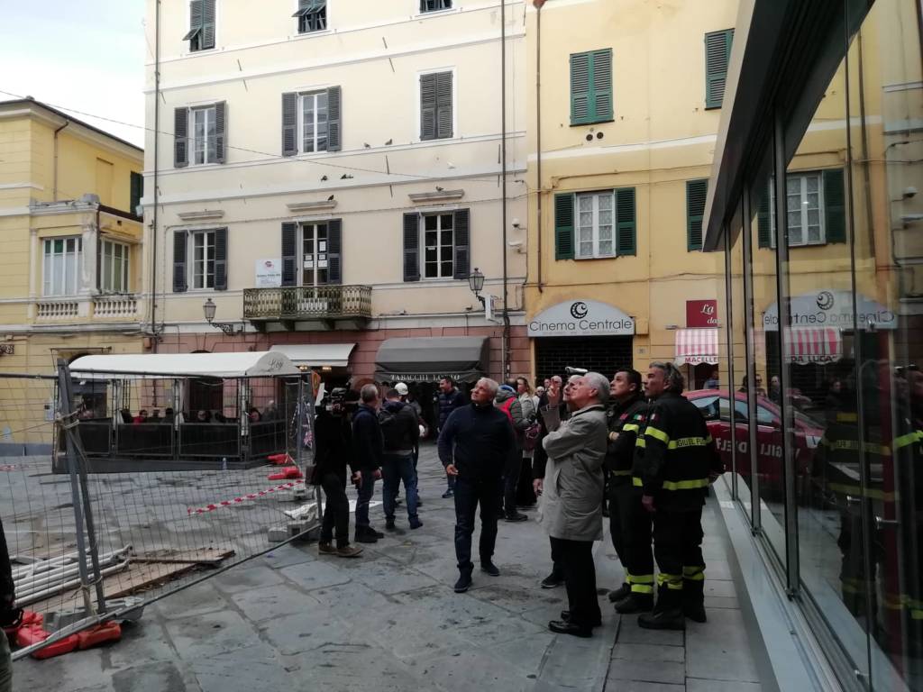 Crollo impalcatura teatro Cavour: sopralluogo del sindaco Scajola