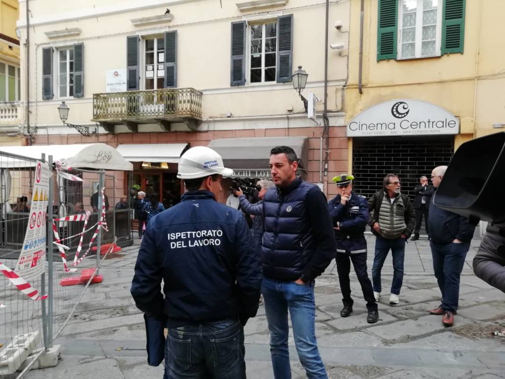 “Non sarebbe dovuto succedere”. Lo ha affermato il Sindaco Claudio Scajola, a margine del sopralluogo effettuato questa mattina in via Cascione insieme ai tecnici del Comune e all’Ispettorato del Lavoro, a seguito del crollo dell’impalcatura che si trovava sul tetto del teatro Cavour per i lavori di riqualificazione.