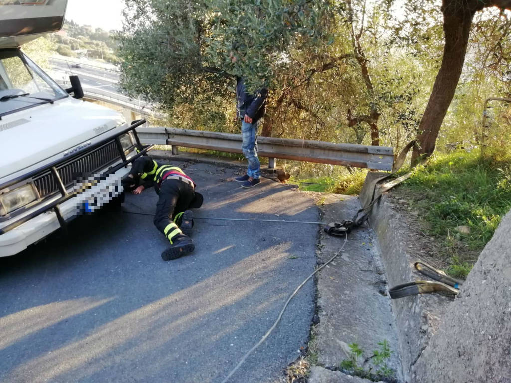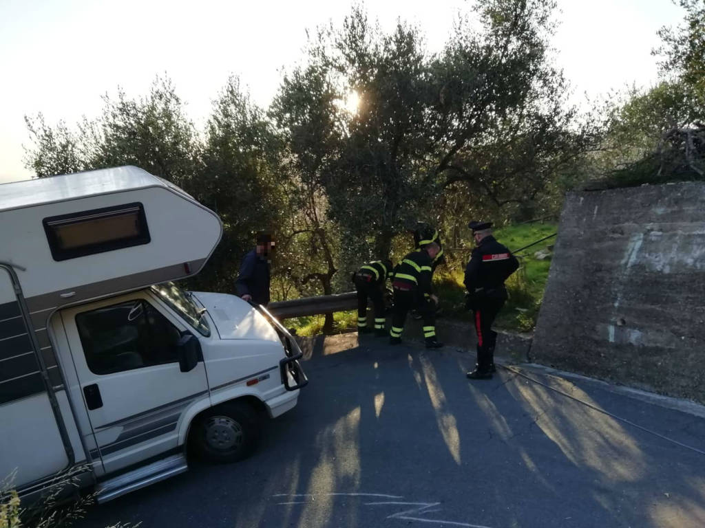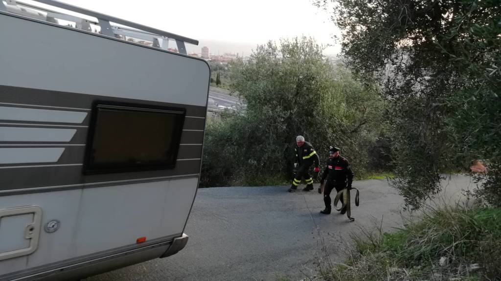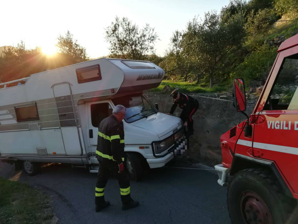 Particolarmente complesse le operazioni di recupero del mezzo. I Vigili del Fuoco hanno dovuto verricellare il mezzo tramite l’ausilio di una fascia attaccata ad un albero, per allargare la curva. Successivamente il camper è stato fatto sterzare e trainato in salita sino ad una zona pianeggiante. L’intervento è durato circa un’ora.
