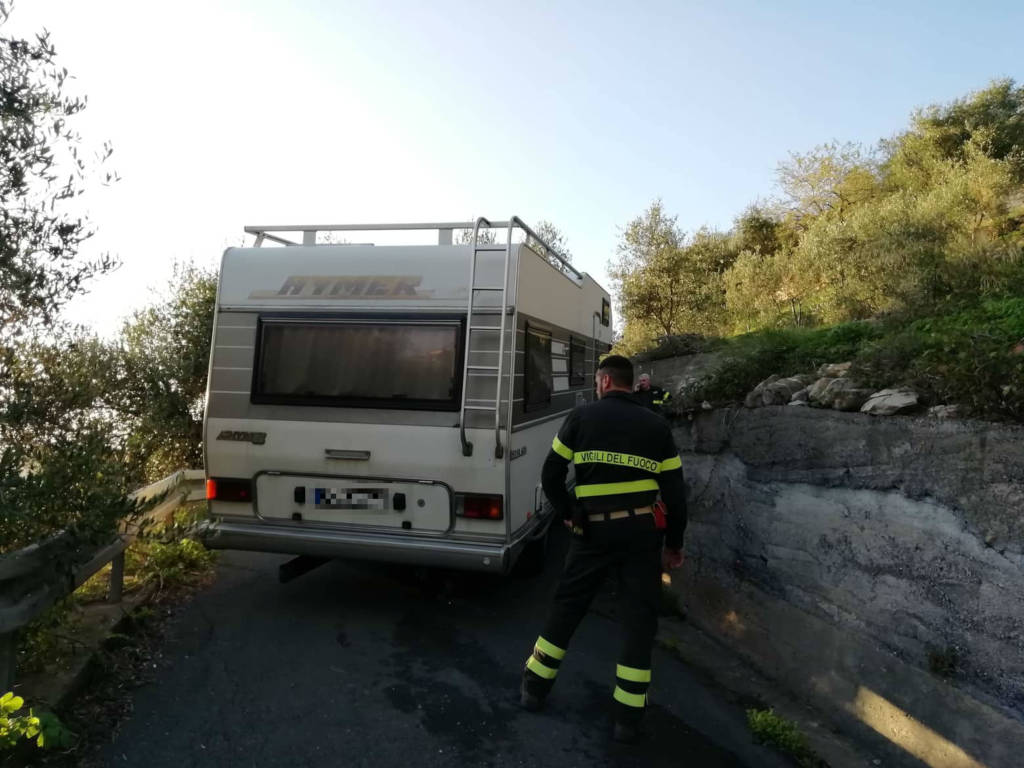 Camper incastrato in Strada dei Bricui: intervengono Vigili del Fuoco e Carabinieri