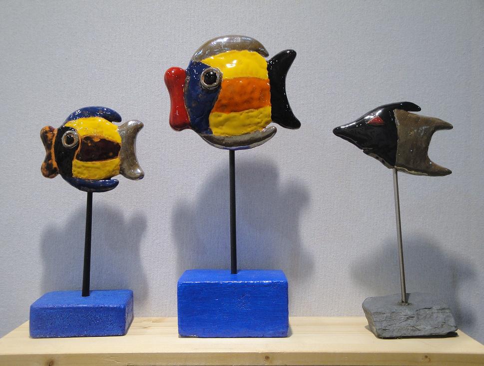 POISSON TROPICAL pf, 2 – ceramique emaillée base siporex – h 29