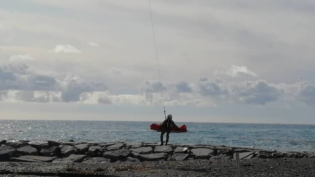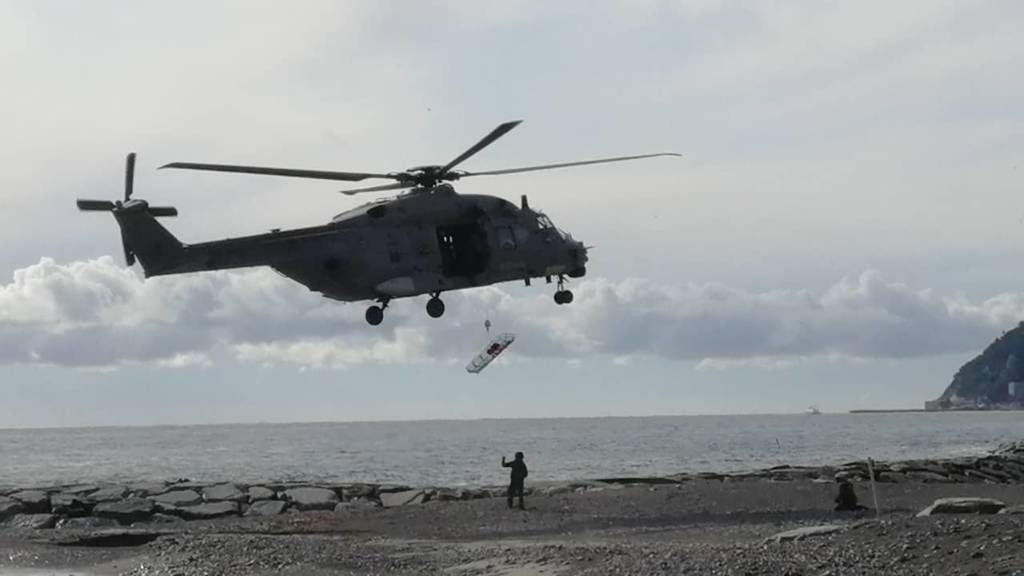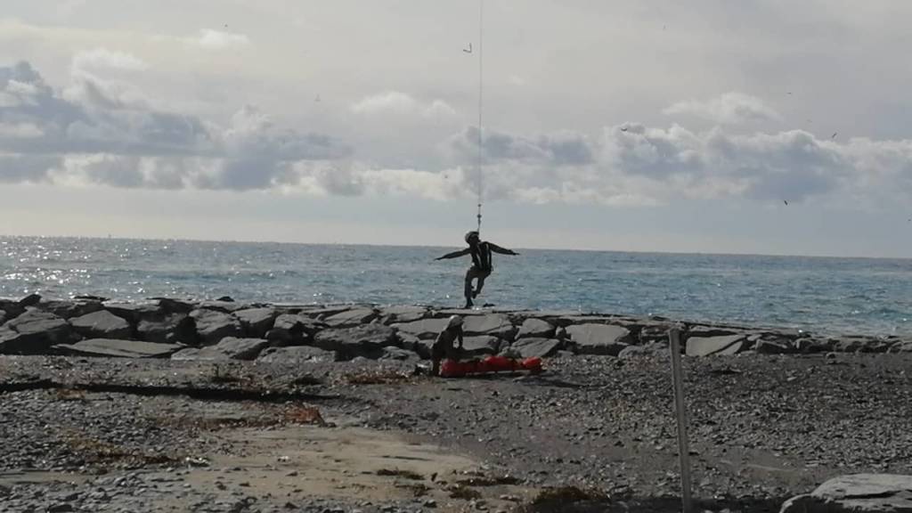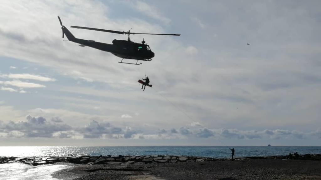I codici rossi sono trasportati in barella sino alle ambulanze, che sono o della Croce Rossa o della Croce d’Oro, vengono portati in spiaggia e con il verricello trasportati in elicottero al campo di Diano Castello.