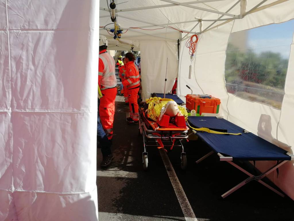 Ci siamo attivati, siamo partiti con il presidio medico avanzato per arrivare sulla scena, stiamo aspettando il via libera dei Vigili del Fuoco per poi iniziare il triage per selezionare i pazienti con i diversi codici.